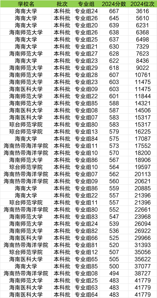 想要知道2025年该填报哪所大学,需要了解往年大学在海南的最低录取分数线及位次情况,碍于篇幅限制,本文仅收集了2024年海南省内公办大学招收本科生的最低分数线及位次信息。