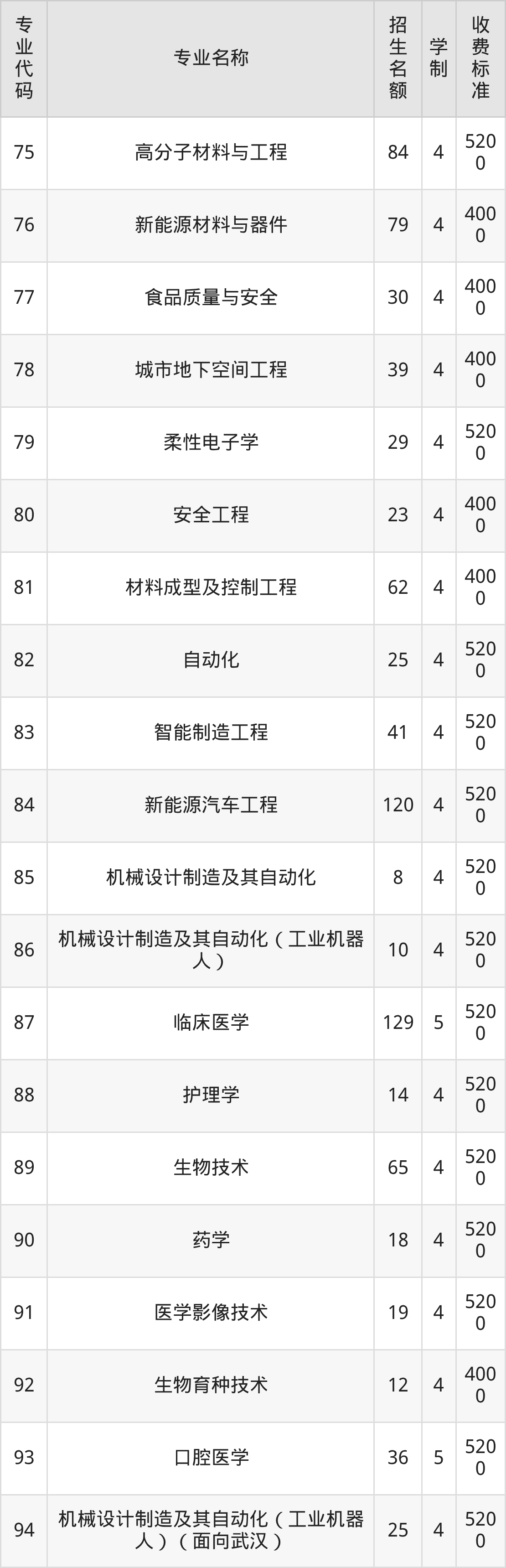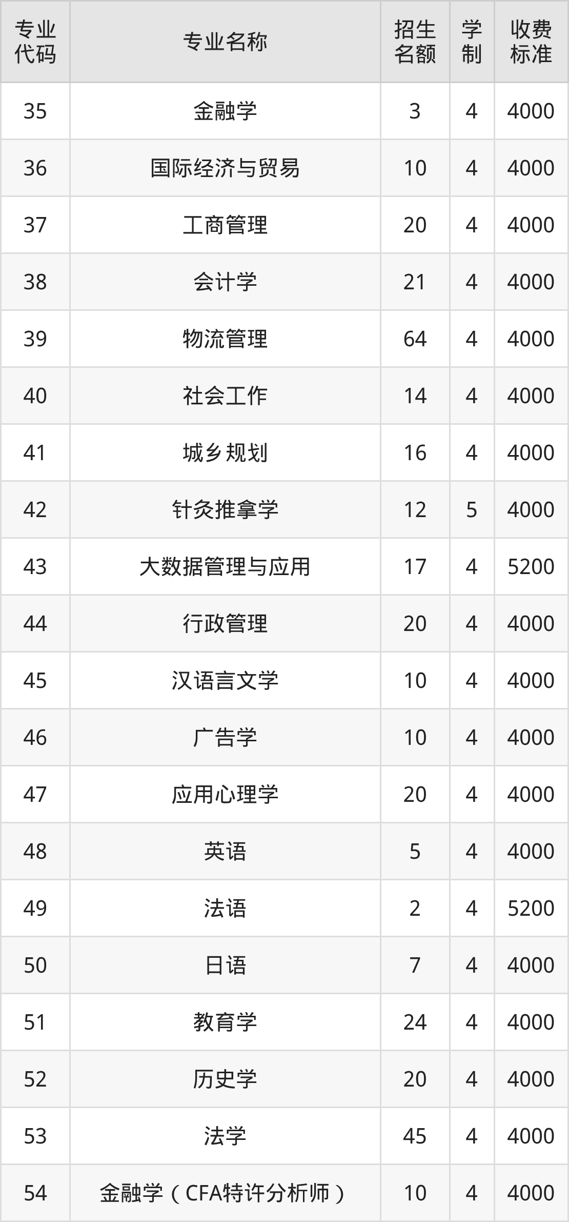 | 专业 代码 | 专业名称 | 招生 名额 | 学 制 | 收费 标准 |