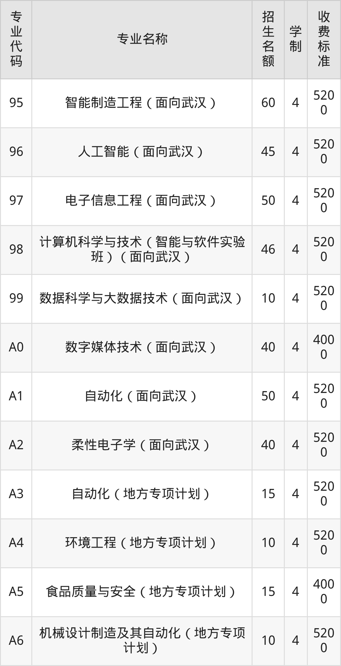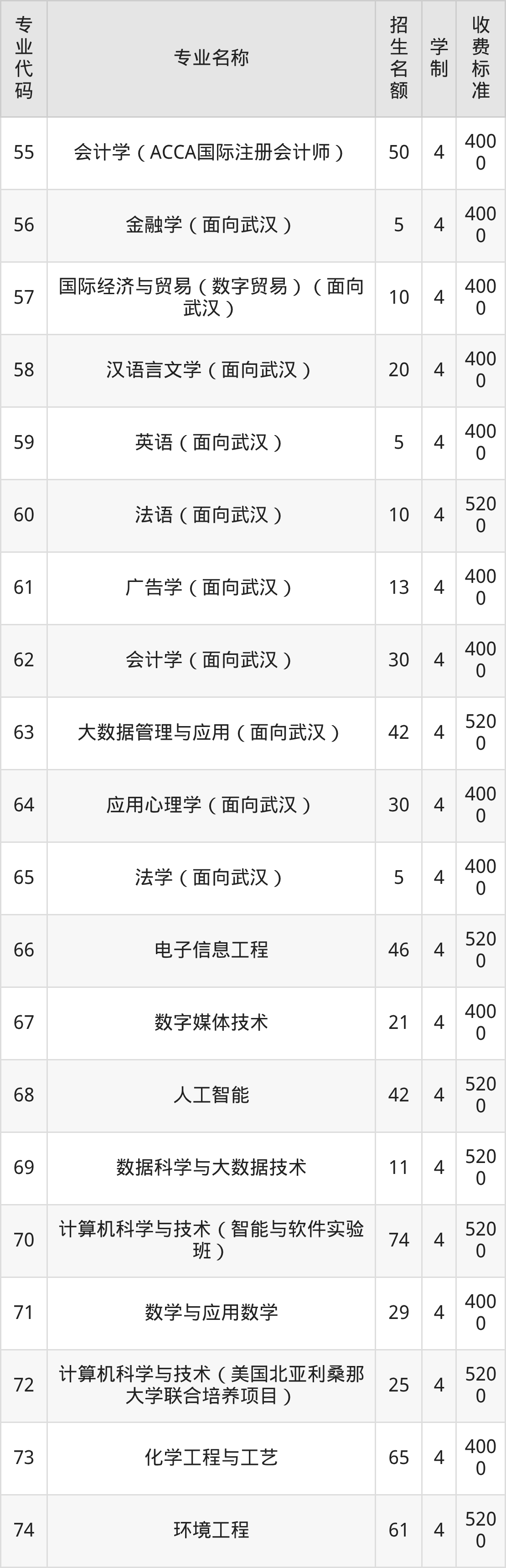 | 22 | 汉语言文学(面向武汉) | 65 | 4 | 4000 |