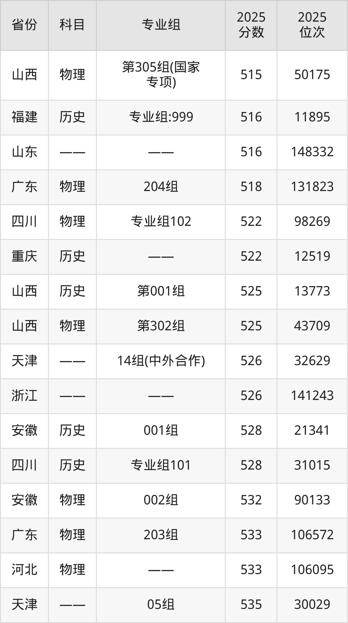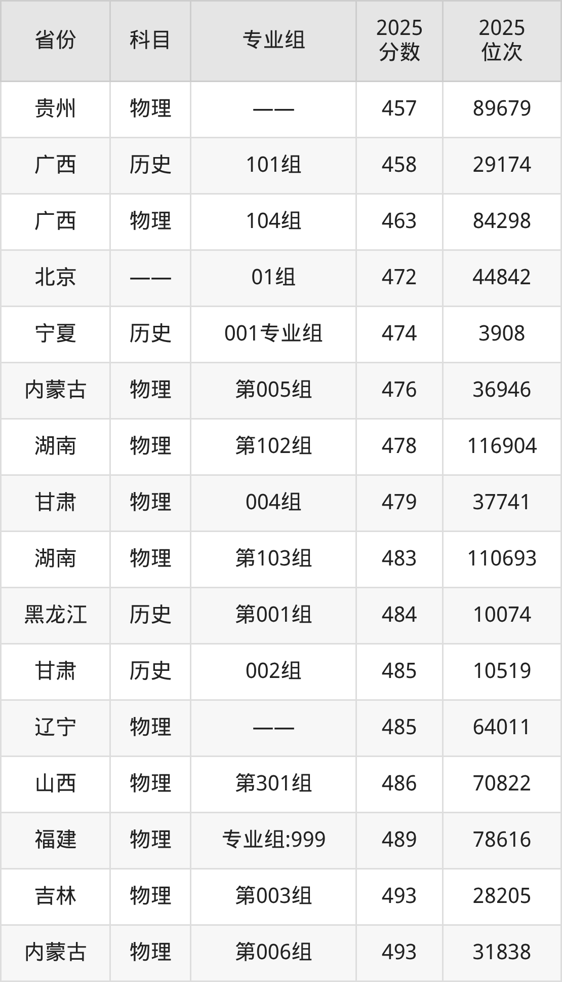 历史类:2025年天津职业技术师范大学录取最低分是458分(广西),对应的位次排名是29174名。