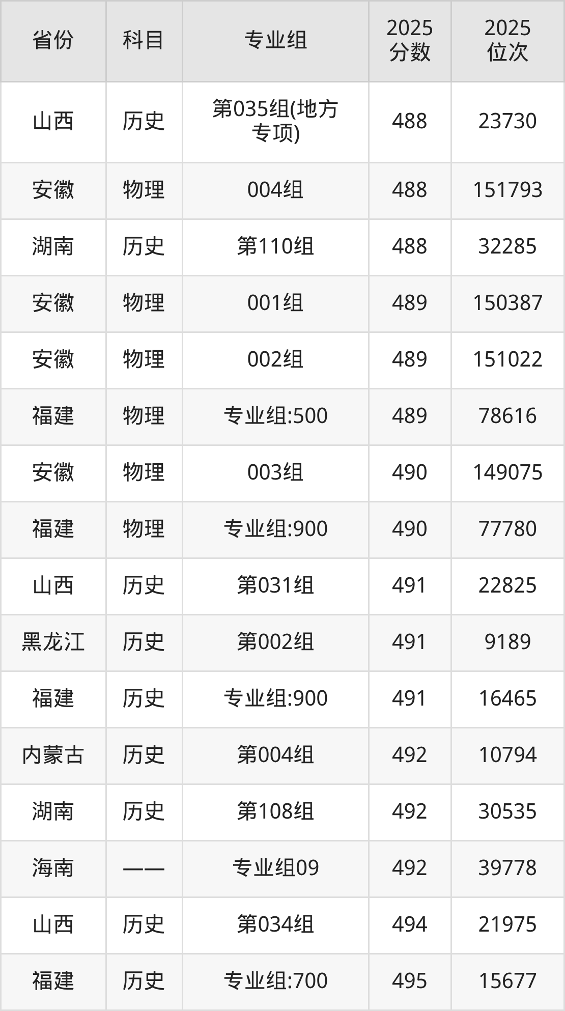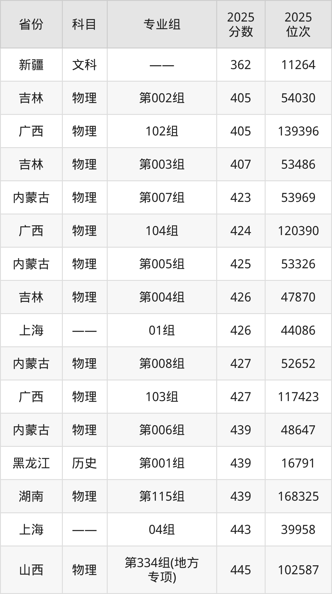 物理类:2025年忻州师范学院录取最低分是405分(吉林),对应的位次排名是54030名。