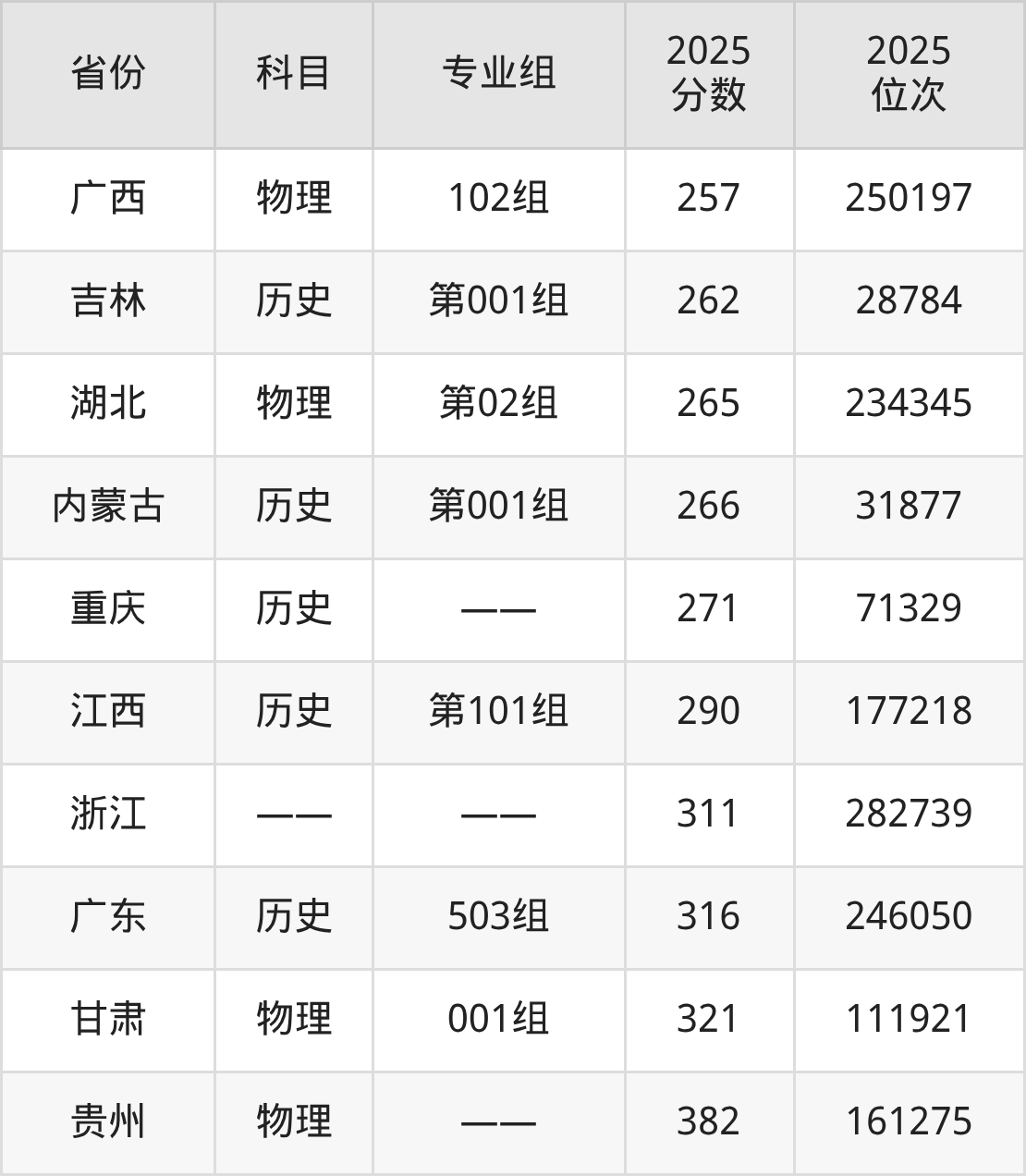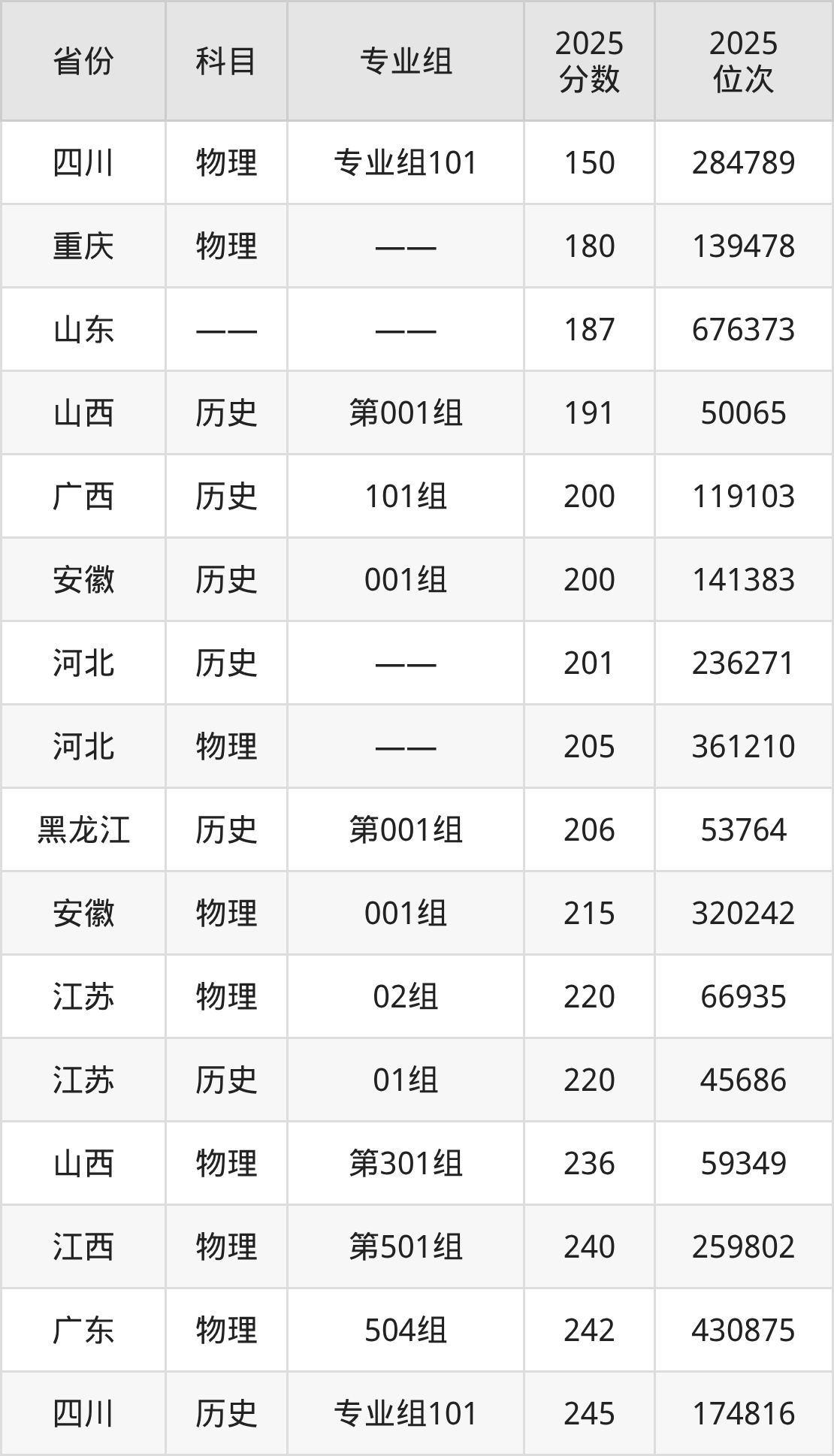 物理类:2025年扬州中瑞酒店职业学院录取最低分是150分(四川),对应的位次排名是284789名。