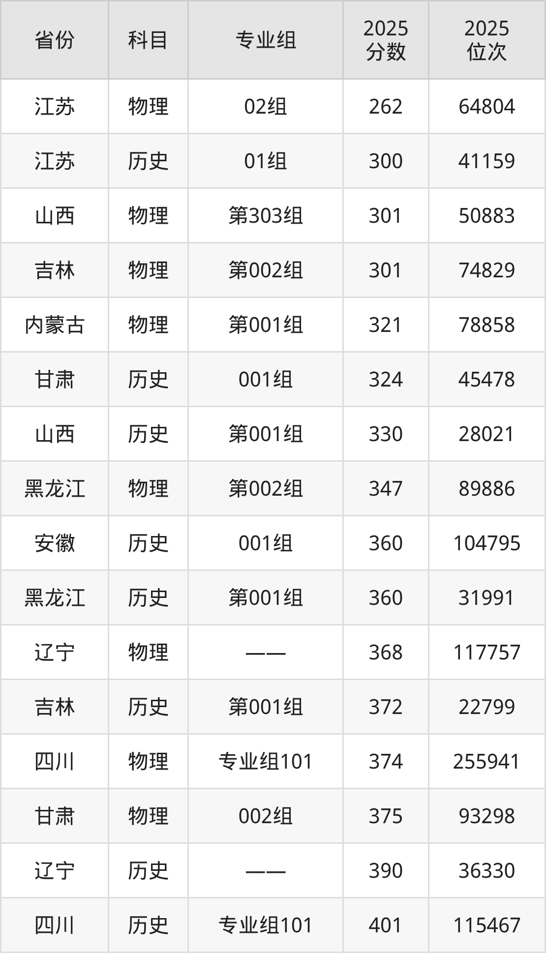 历史类:2025年山西职业技术学院录取最低分是300分(江苏),对应的位次排名是41159名。