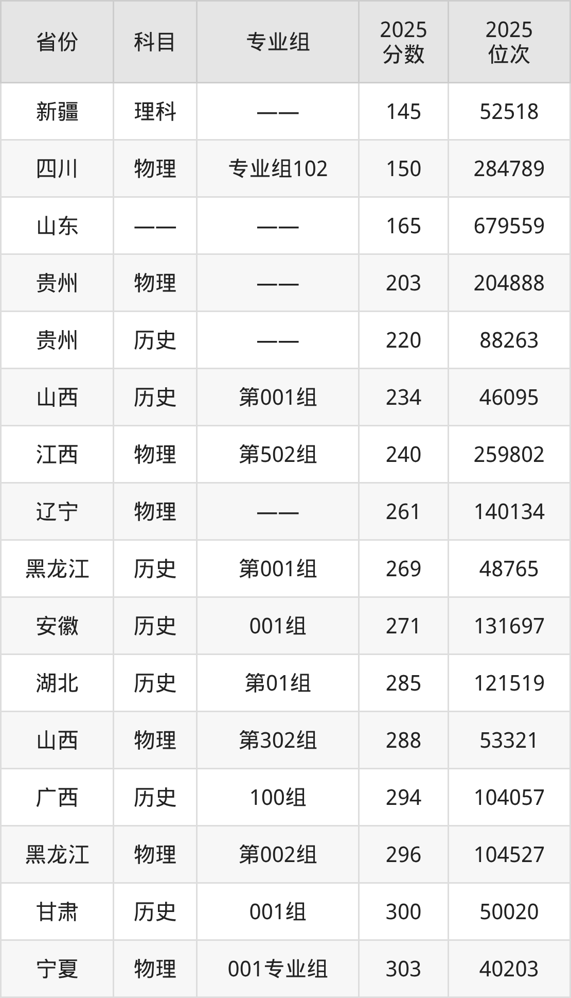 物理类:2025年贵州电子信息职业技术学院录取最低分是150分(四川),对应的位次排名是284789名。
