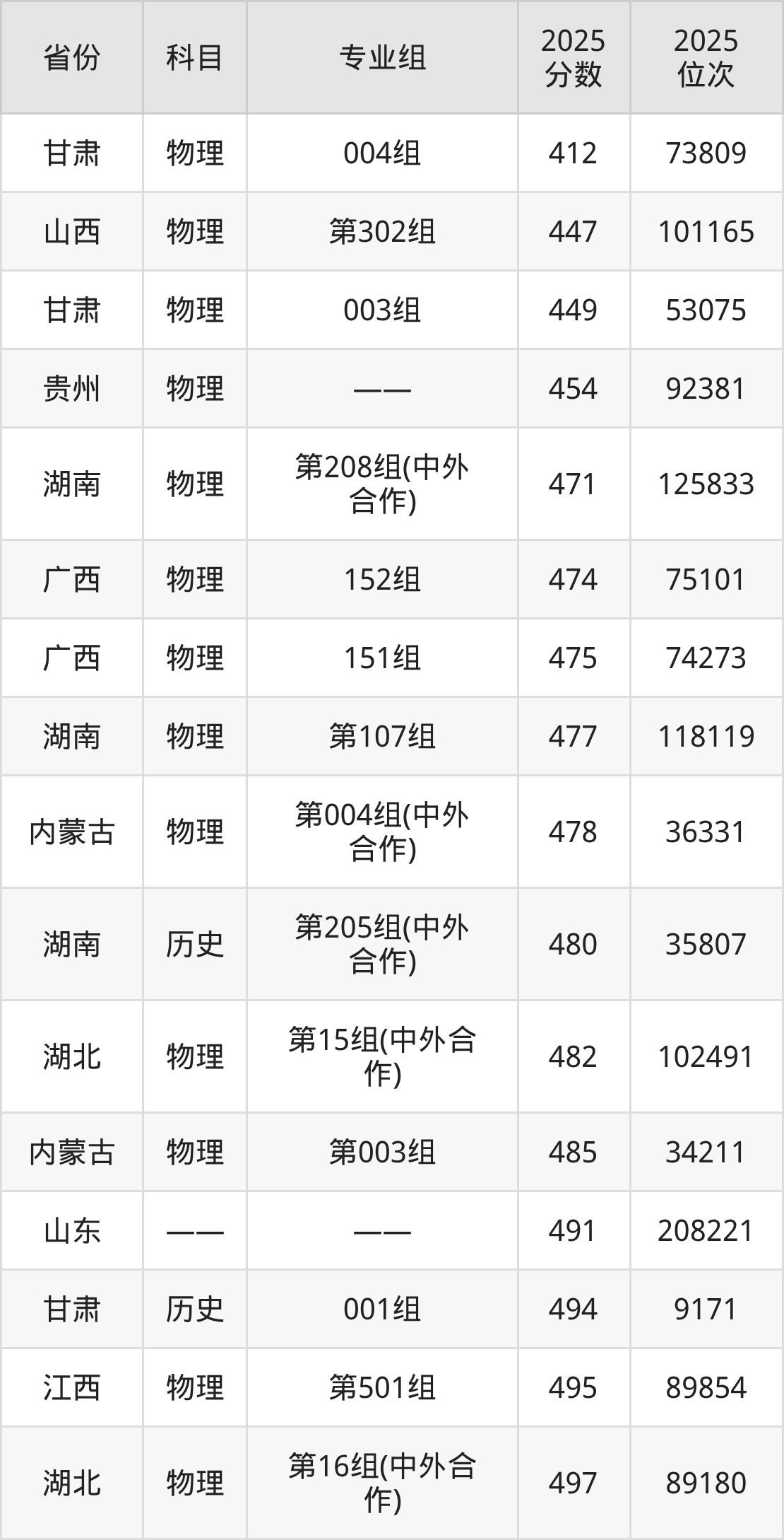 物理类:2025年湖北第二师范学院录取最低分是412分(甘肃),对应的位次排名是73809名。