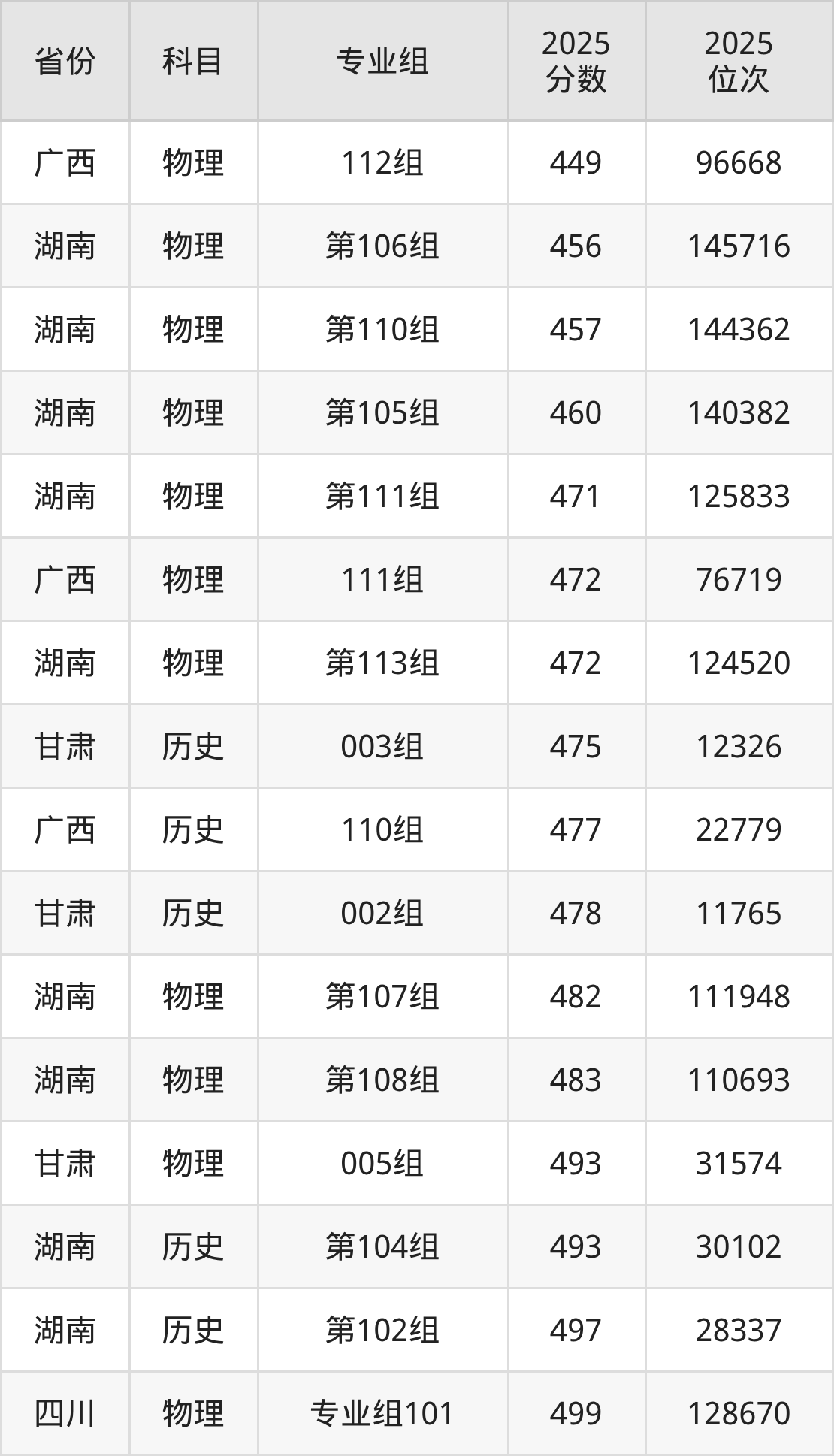 物理类:2025年西藏民族大学录取最低分是449分(广西),对应的位次排名是96668名。
