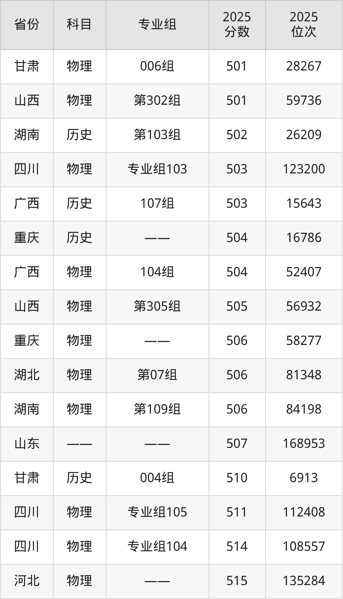 3+3地区:2025年西藏民族大学录取最低分是507分(山东),对应的位次排名是168953名。