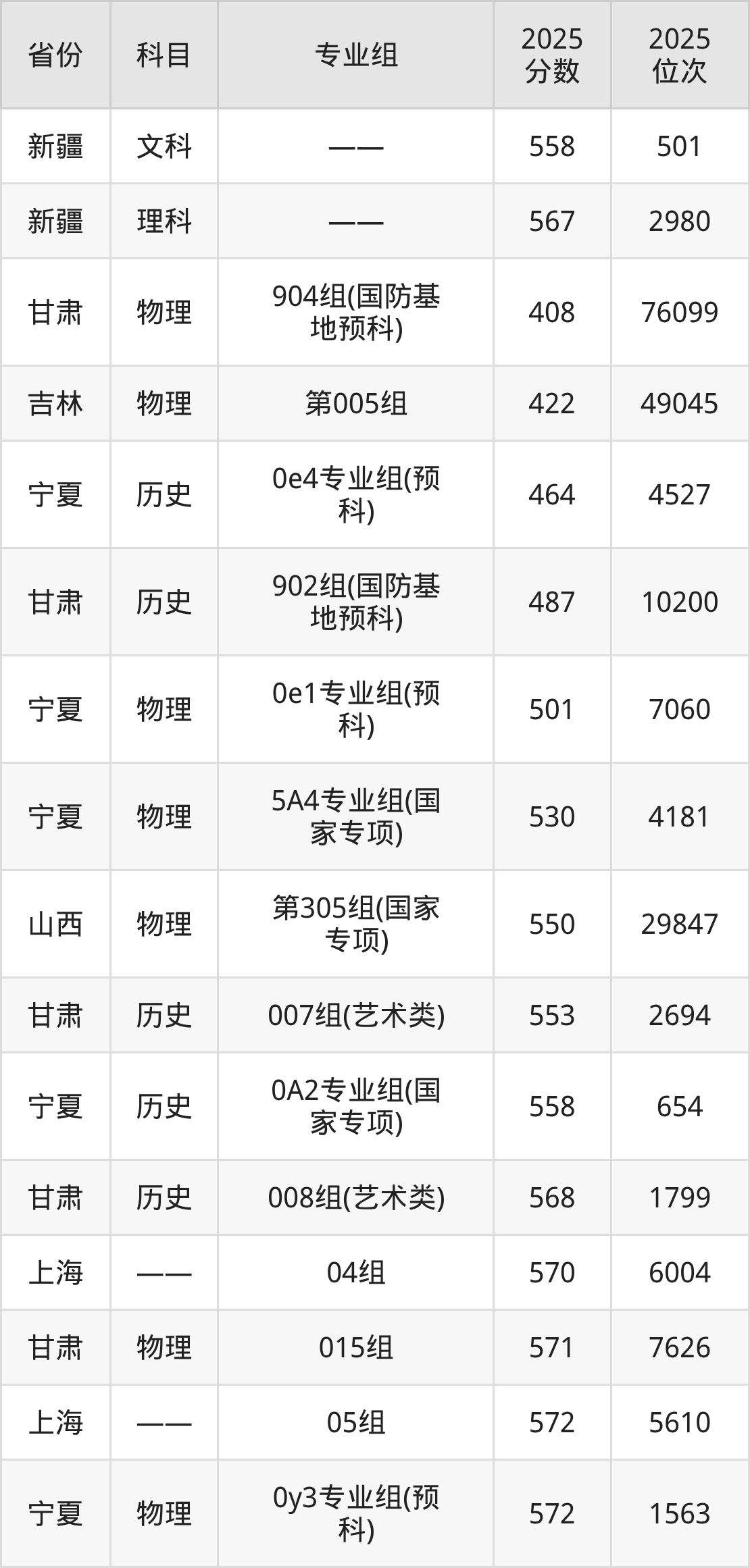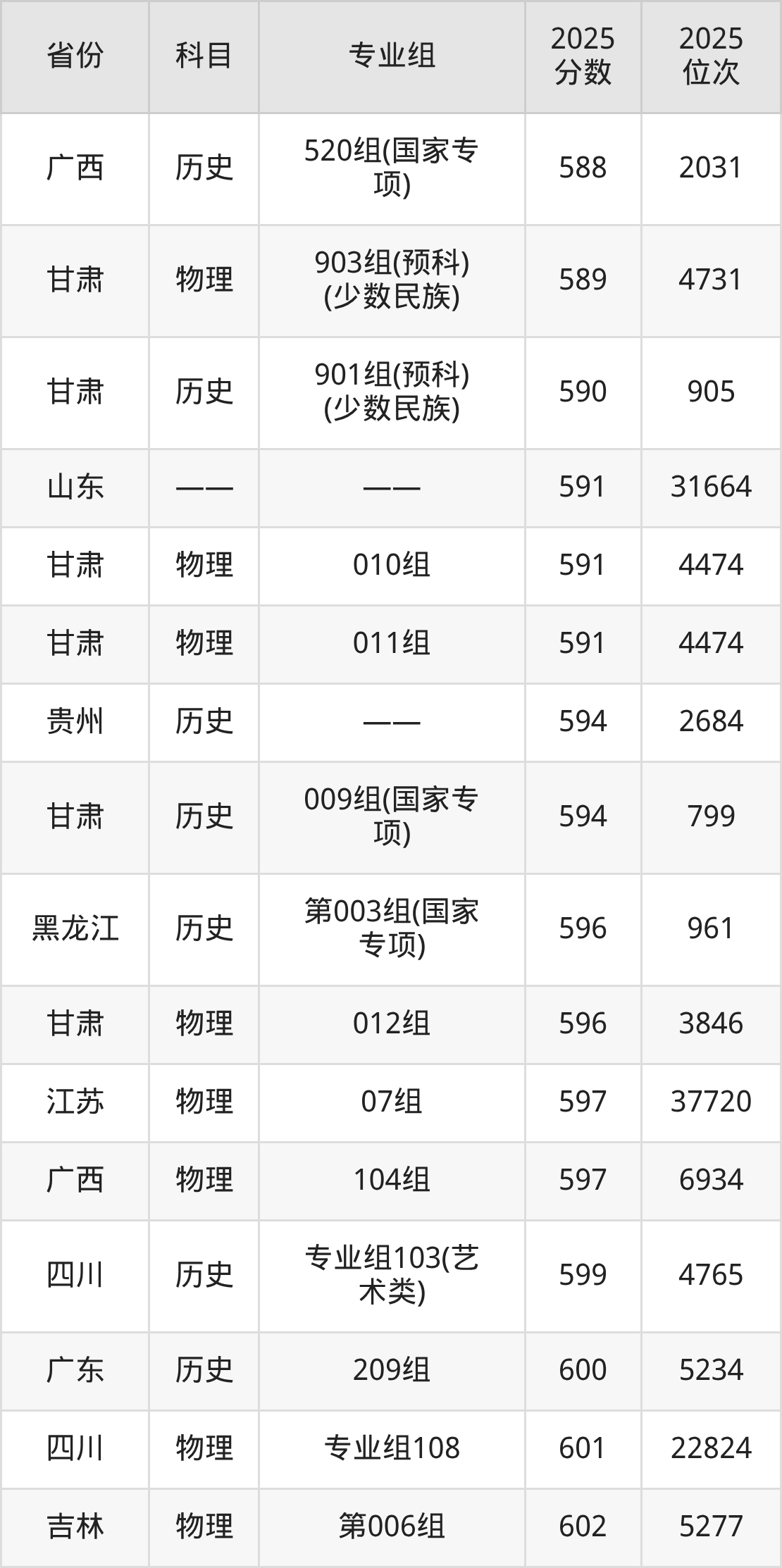 文科:2025年四川大学录取最低分是558分(新疆),对应的位次排名是501名。