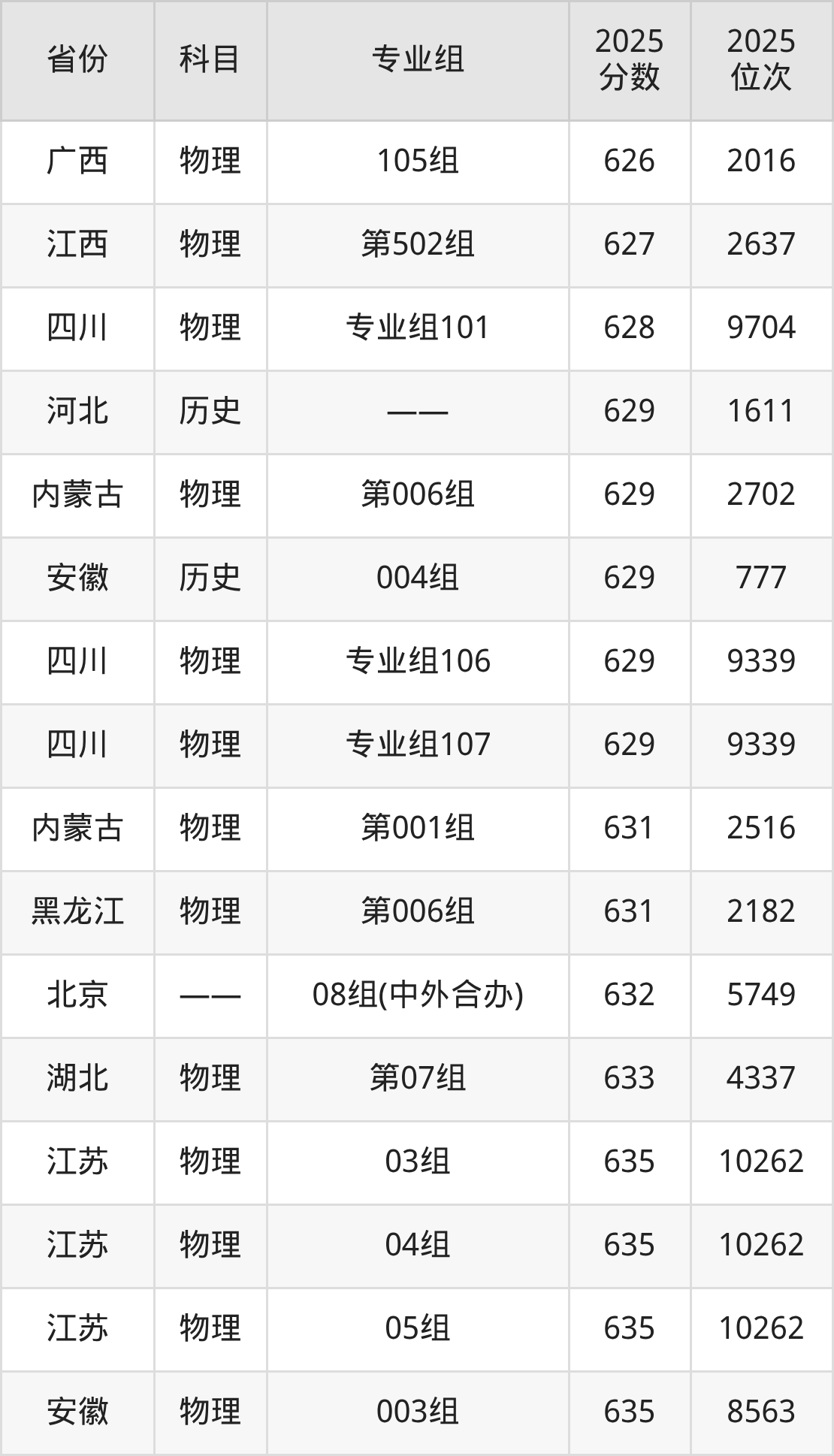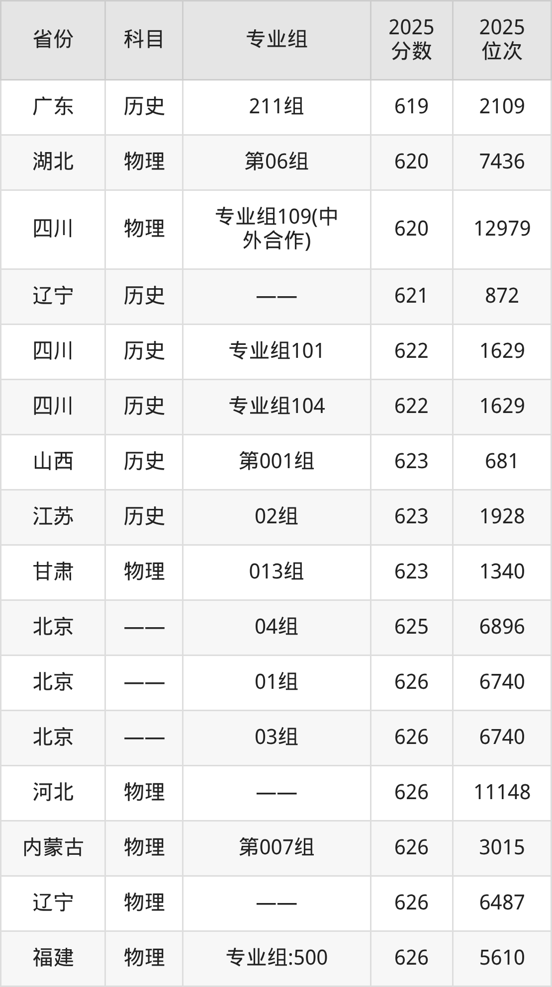 物理类:2025年四川大学省内录取最低分是601分,对应的位次排名是22824名。建议:如果2026年排名超过22824名,那么被该校录取的概率较大。