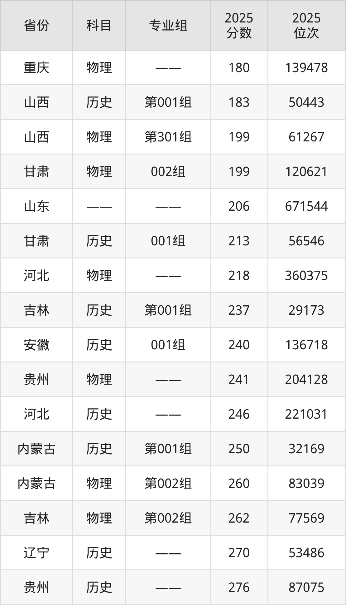 物理类:2025年山东力明科技职业学院录取最低分是180分(重庆),对应的位次排名是139478名。