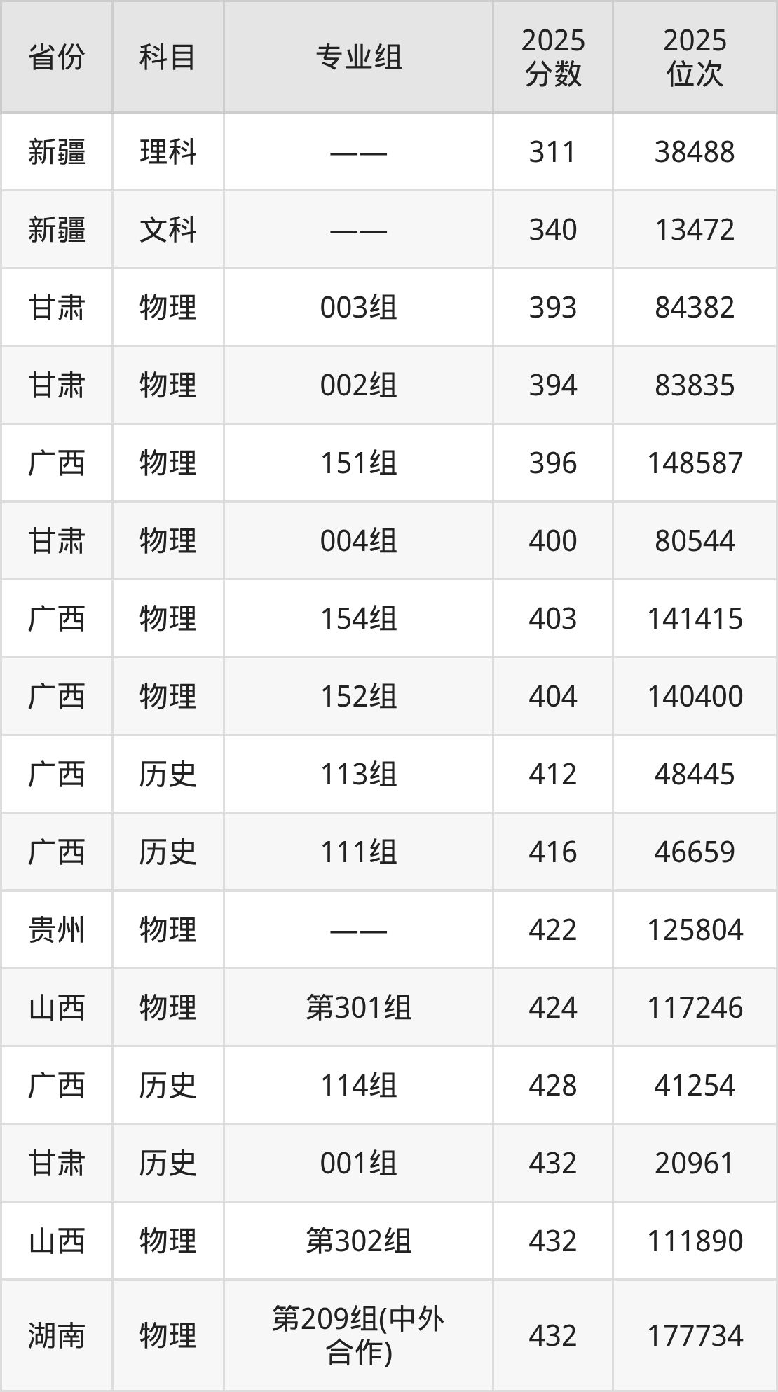 物理类:2025年福建师范大学协和学院录取最低分是393分(甘肃),对应的位次排名是84382名。