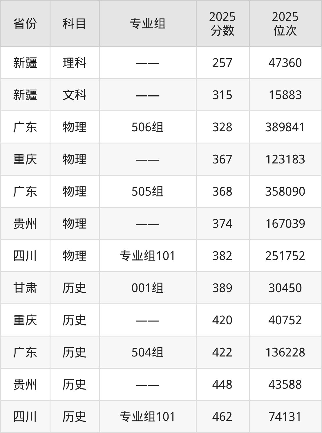 物理类:2025年四川卫生康复职业学院录取最低分是328分(广东),对应的位次排名是389841名。