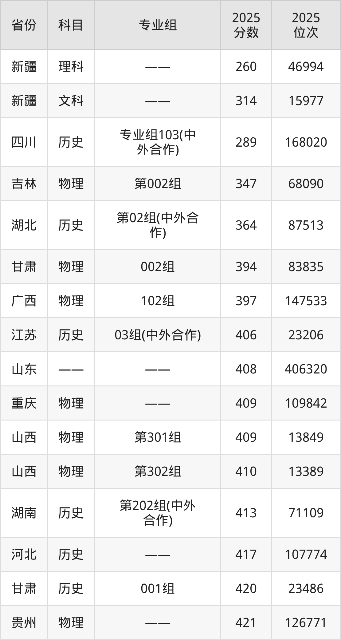 理科:2025年苏州职业技术大学录取最低分是260分(新疆),对应的位次排名是46994名。