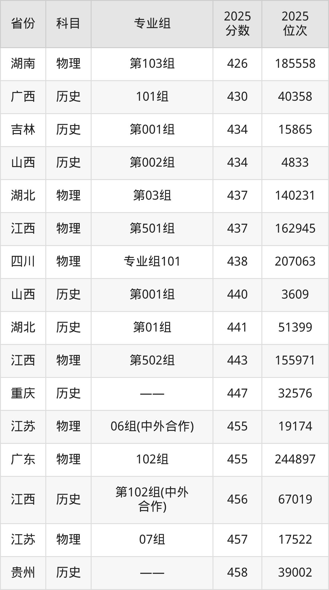 物理类:2025年苏州职业技术大学录取最低分是347分(吉林),对应的位次排名是68090名。