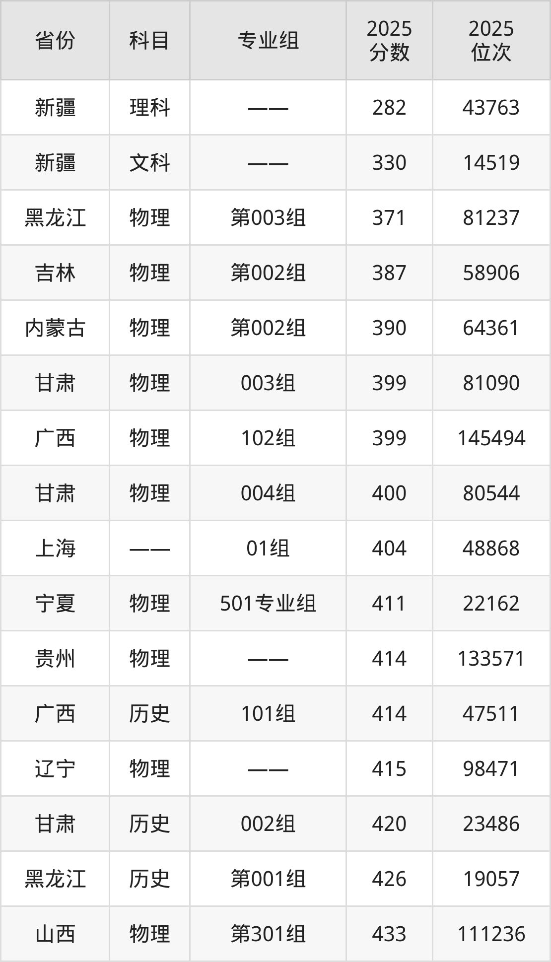 2025年南昌交通学院全国排名第809位,2025年录取分数线最低282分(位次43763)。本文将展示南昌交通学院在各省最低录取分数线汇总,供2026届想要报考该校的考生查阅。