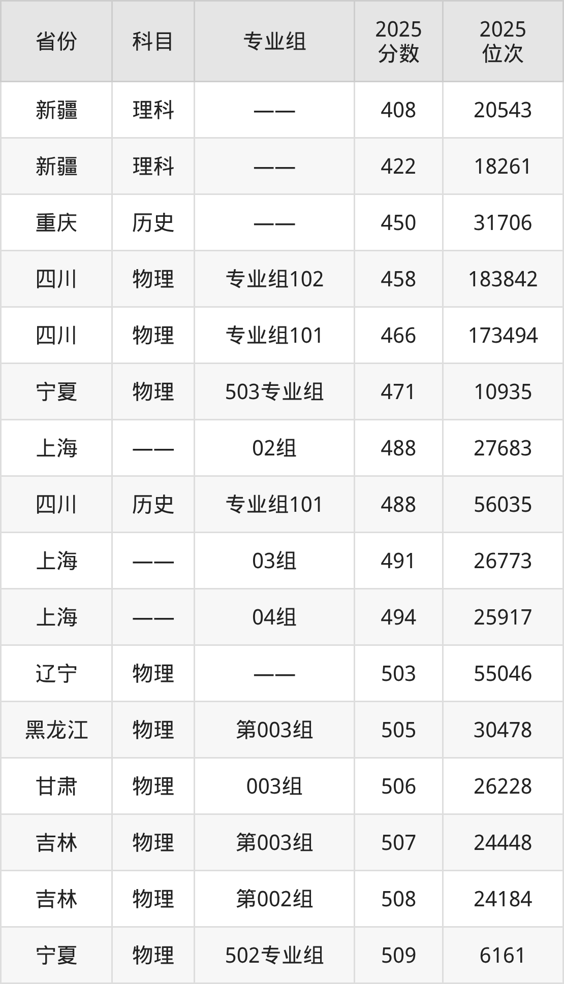 物理类:2025年重庆医科大学录取最低分是458分(四川),对应的位次排名是183842名。
