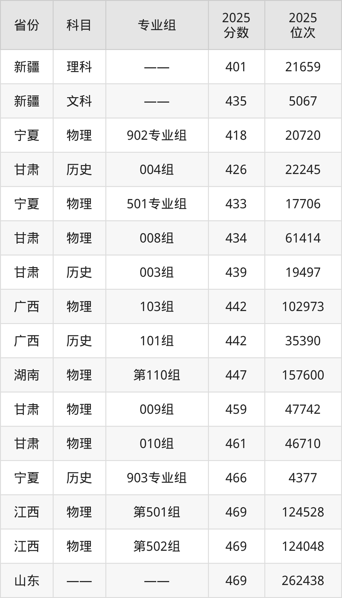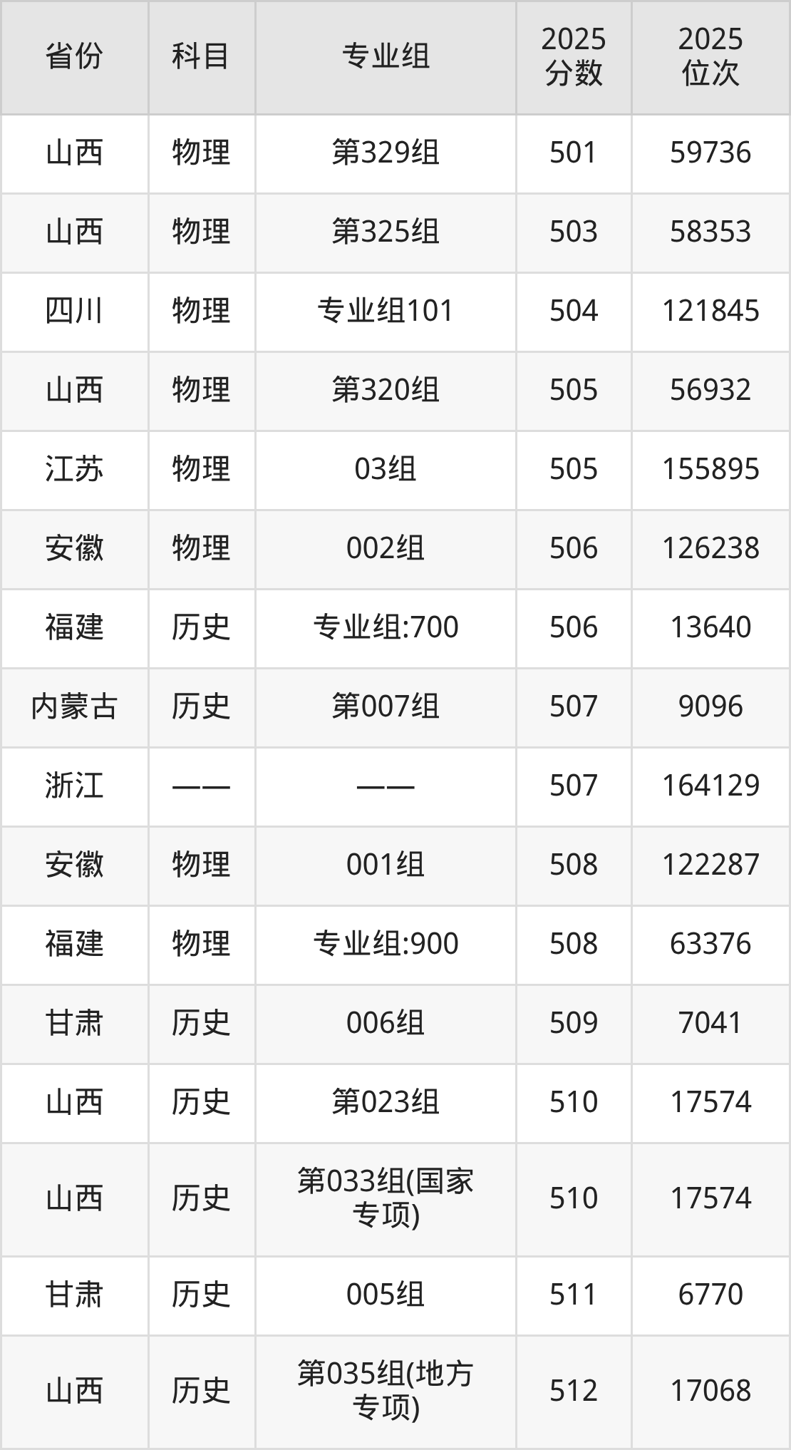 物理类:2025年太原师范学院录取最低分是418分(宁夏),对应的位次排名是20720名。