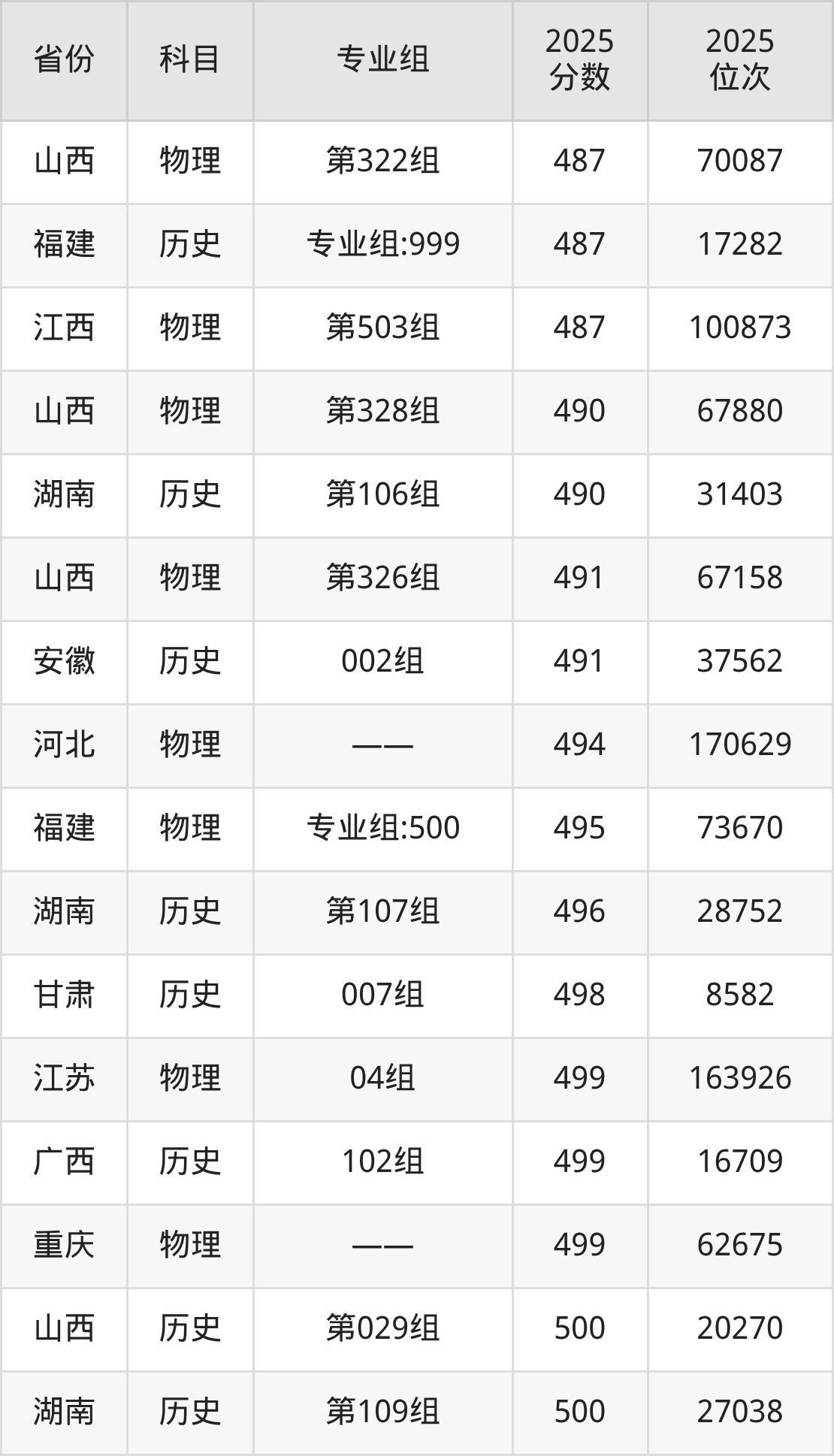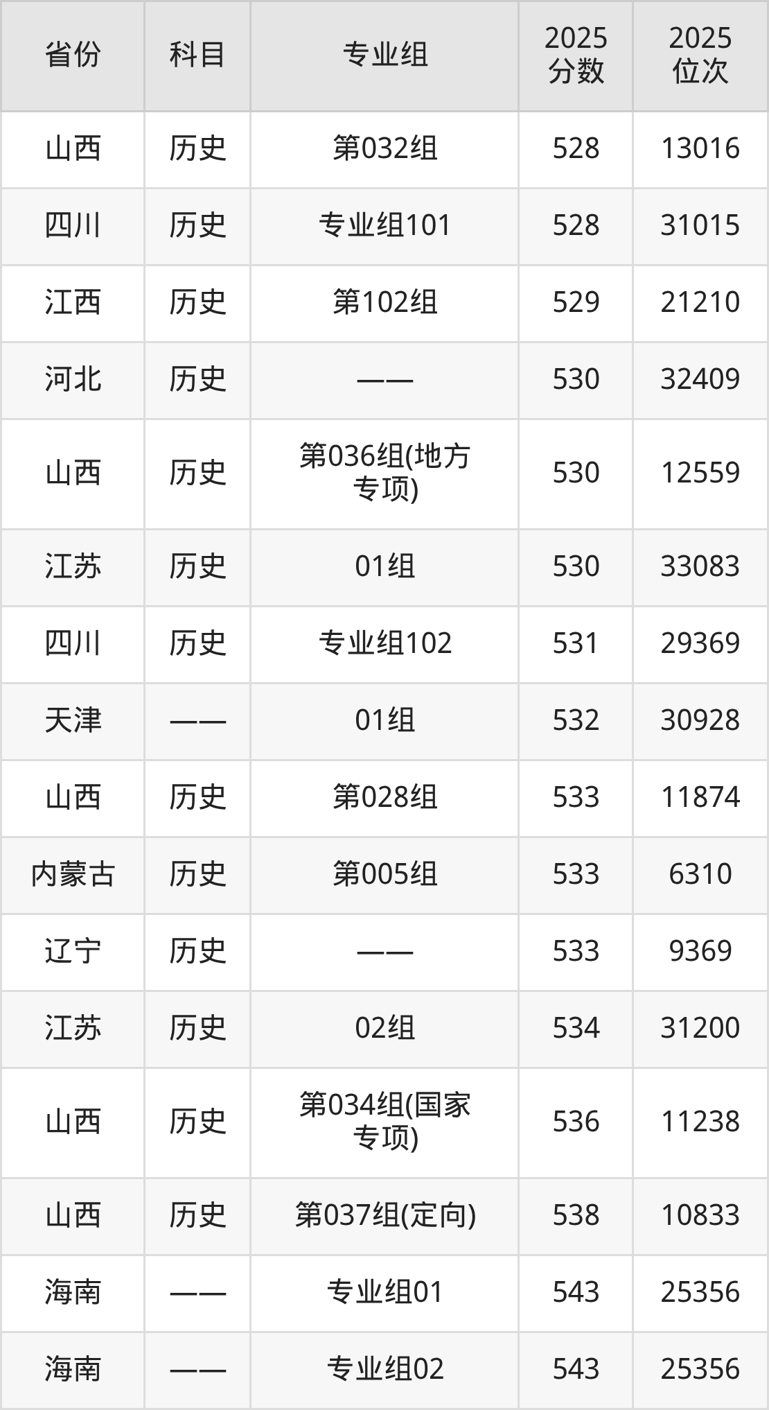 历史类:2025年太原师范学院省内录取最低分是500分,对应的位次排名是20270名。建议:如果2026年排名超过20270名,那么被该校录取的概率较大。