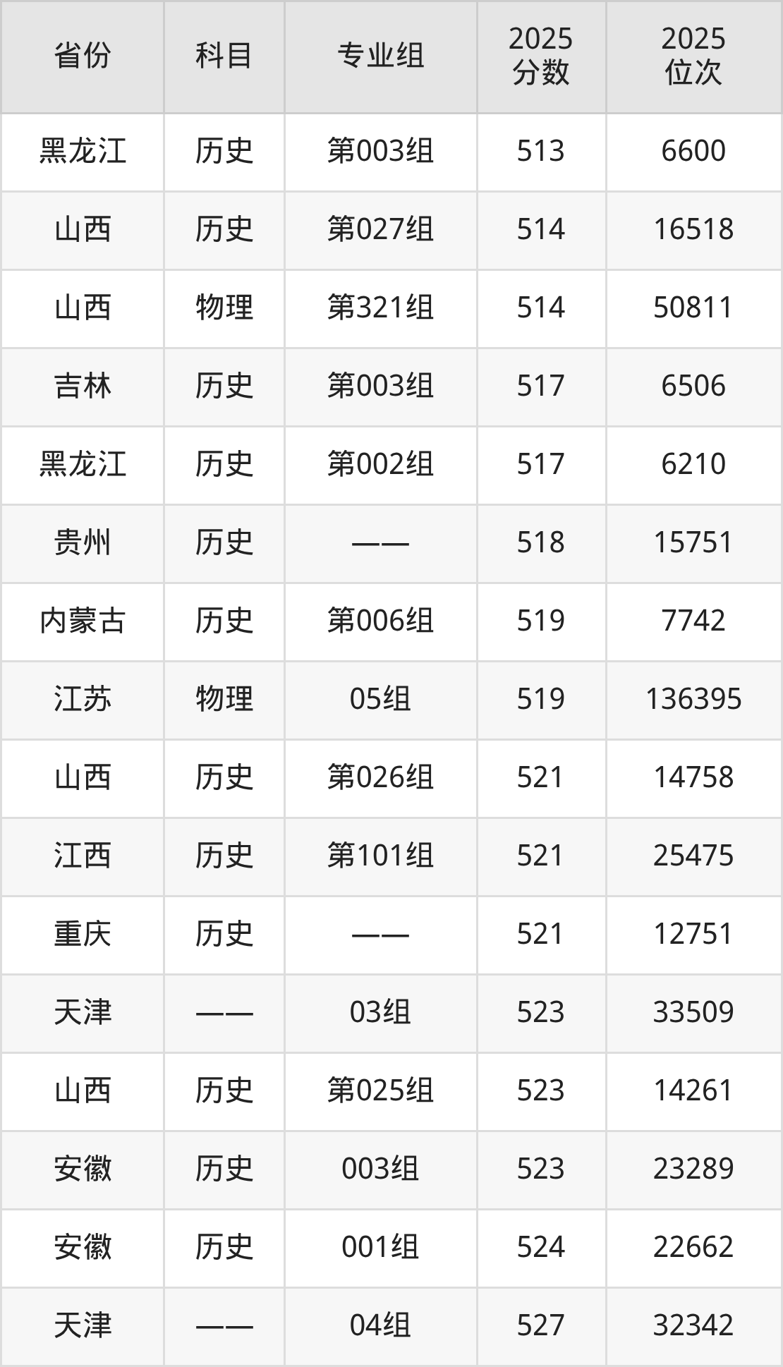 理科:2025年太原师范学院录取最低分是401分(新疆),对应的位次排名是21659名。