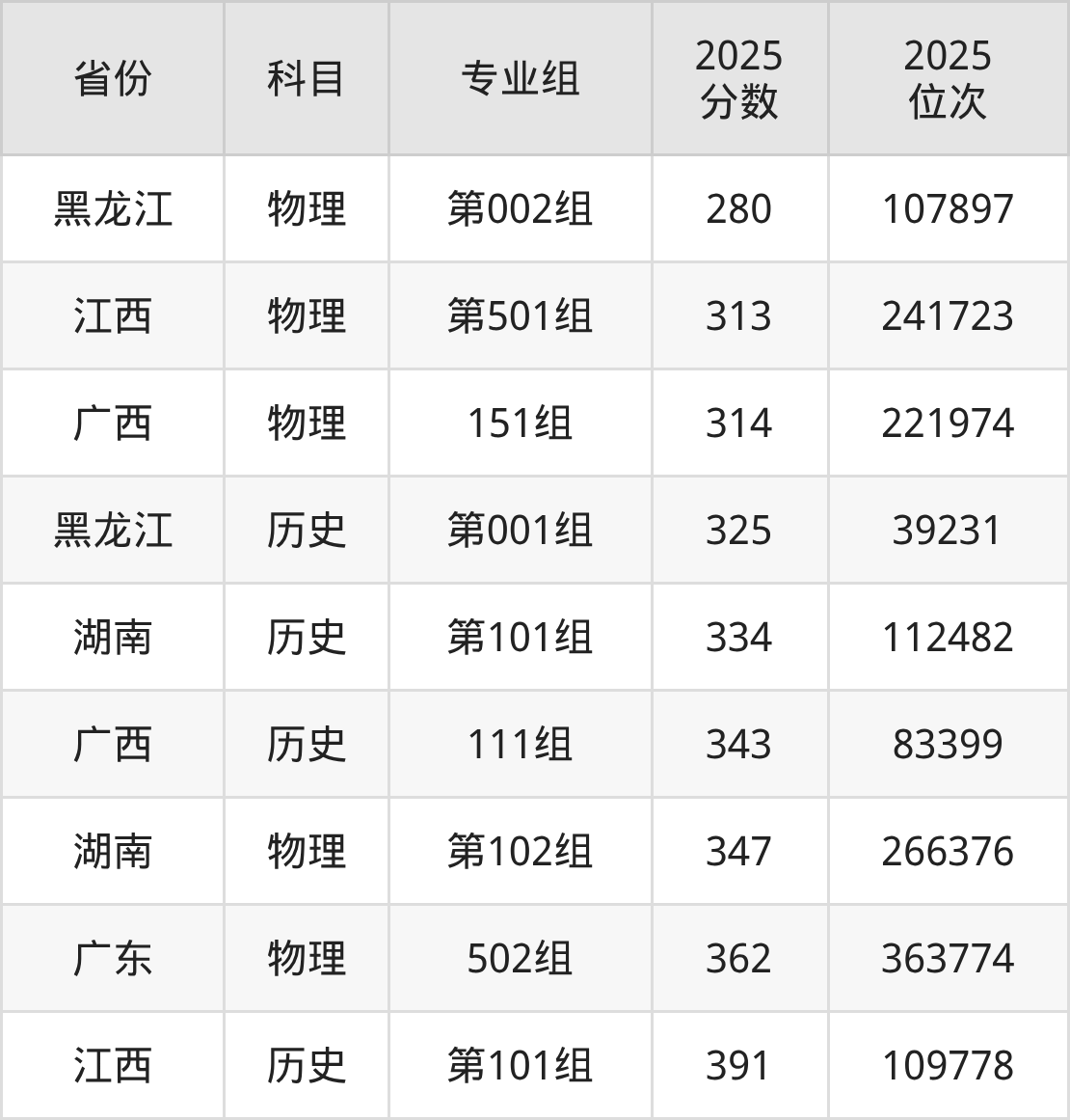 物理类:2025年广西信息职业技术学院录取最低分是280分(黑龙江),对应的位次排名是107897名。