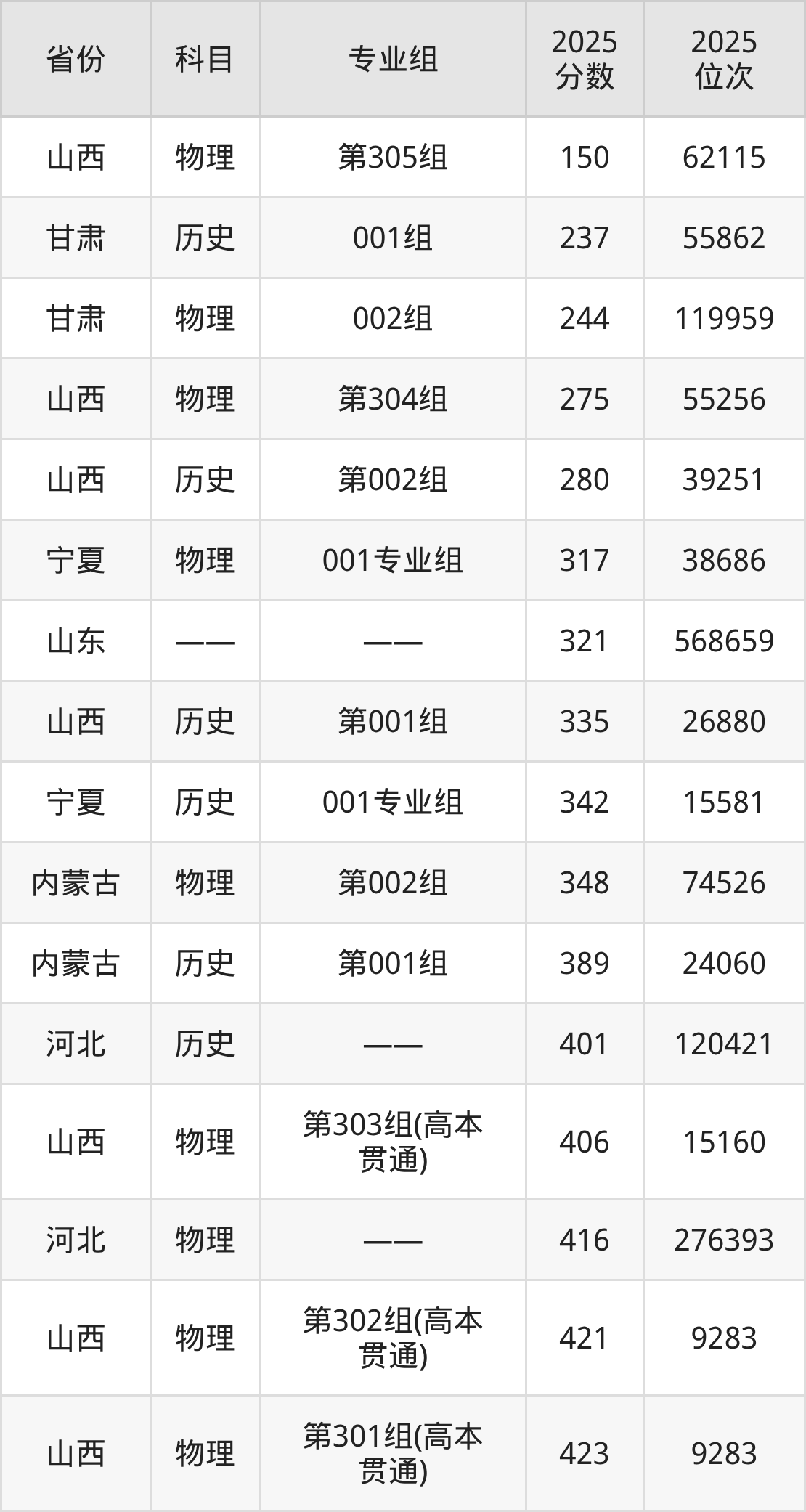 物理类:2025年山西水利职业技术学院录取最低分是244分(甘肃),对应的位次排名是119959名。