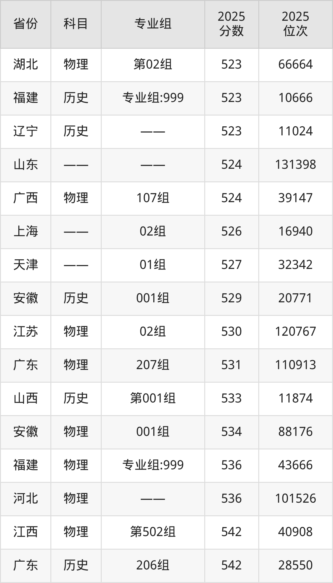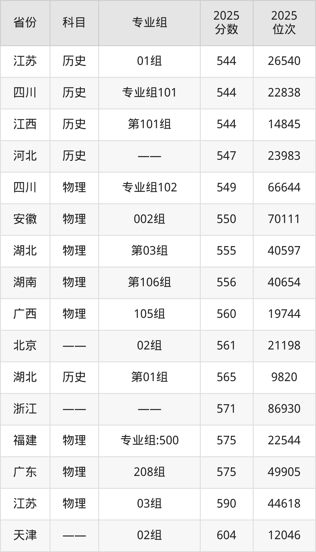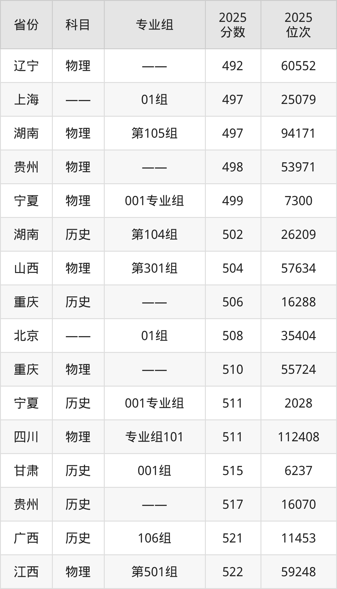 物理类:2025年四川美术学院录取最低分是492分(辽宁),对应的位次排名是60552名。