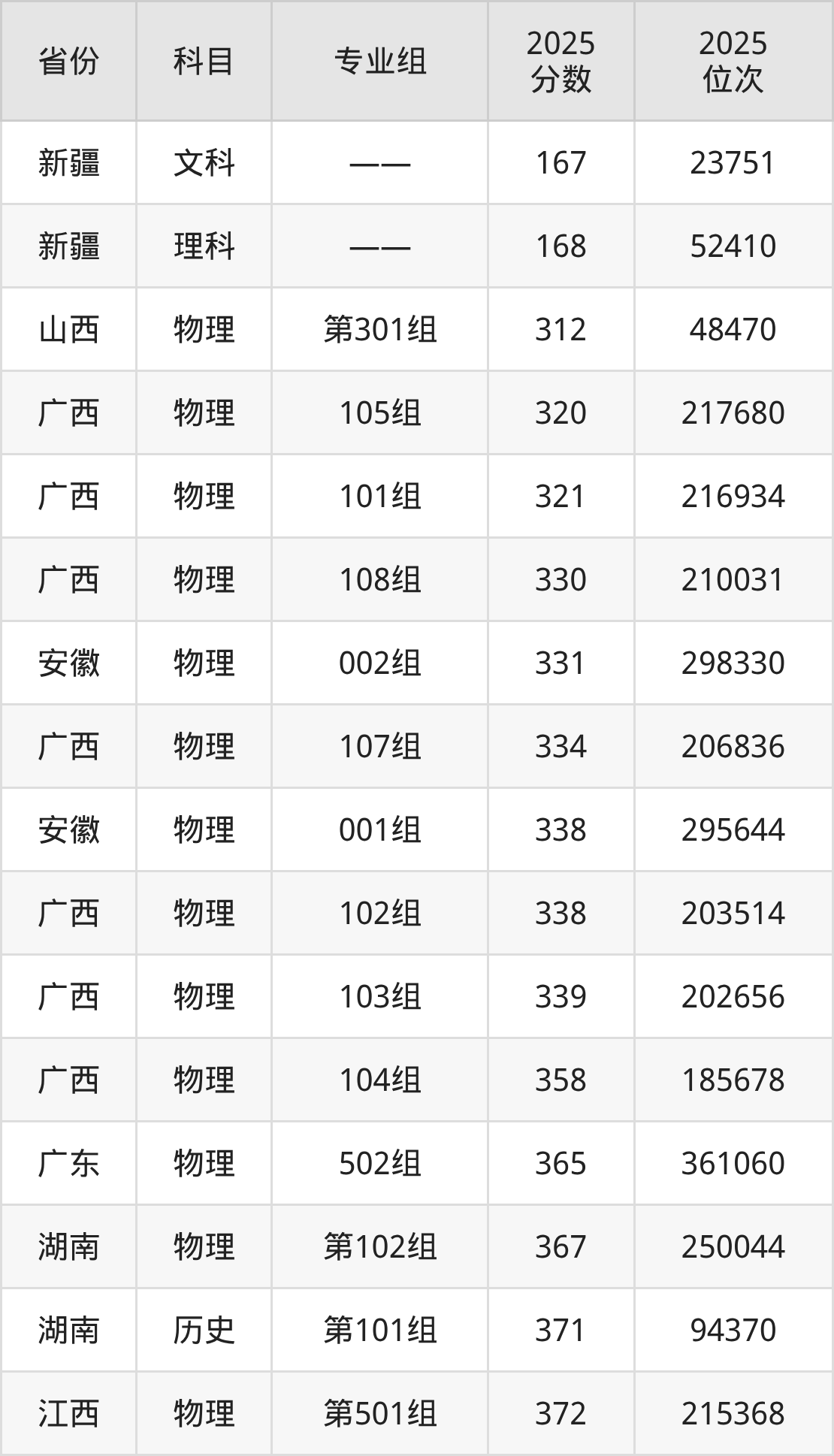 理科:2025年惠州城市职业学院录取最低分是168分(新疆),对应的位次排名是52410名。