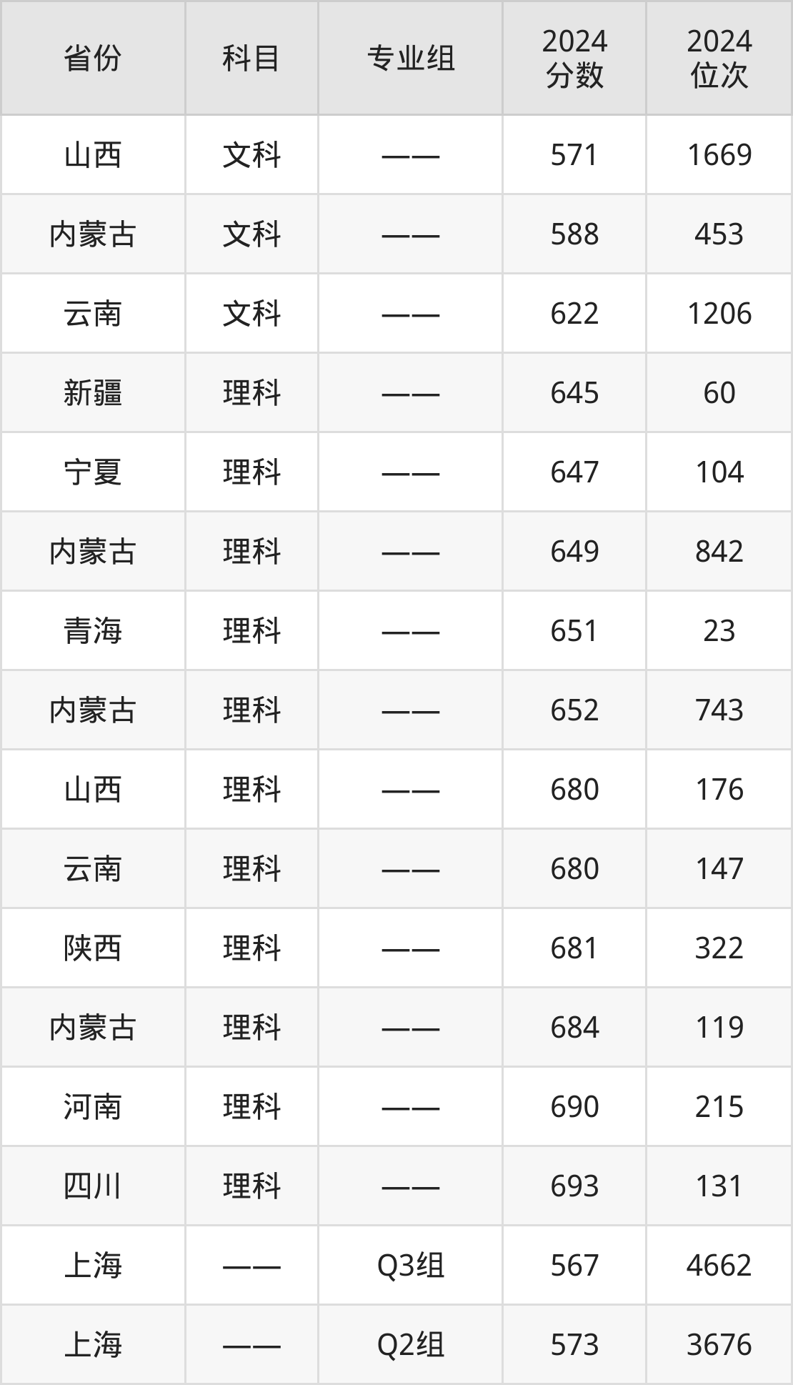 文科:2024年上海交通大学医学院录取最低分是571分(山西),对应的位次排名是1669名。