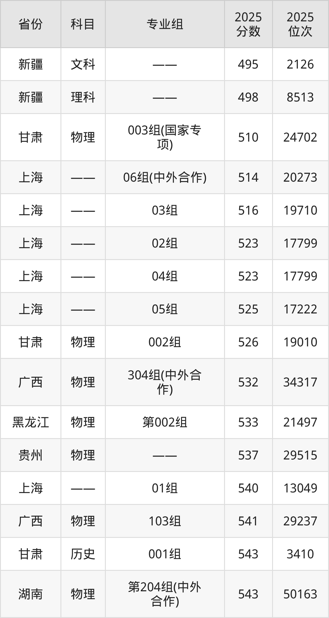 理科:2025年上海对外经贸大学录取最低分是498分(新疆),对应的位次排名是8513名。