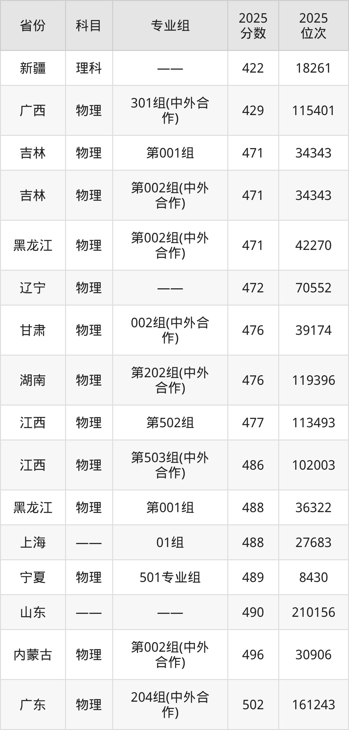 理科:2025年昆明医科大学录取最低分是422分(新疆),对应的位次排名是18261名。