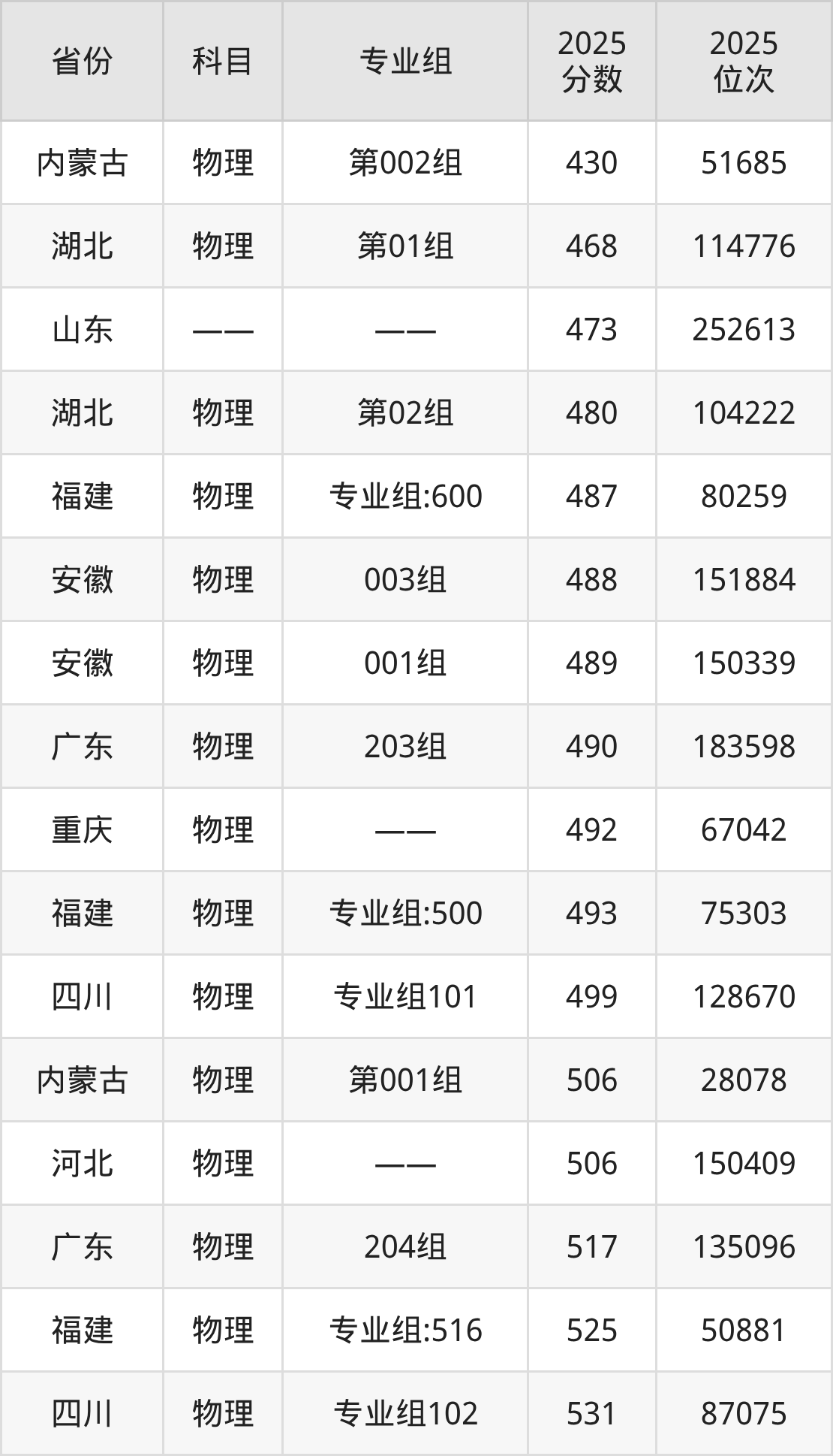 物理类:2025年豫北医学院录取最低分是430分(内蒙古),对应的位次排名是51685名。
