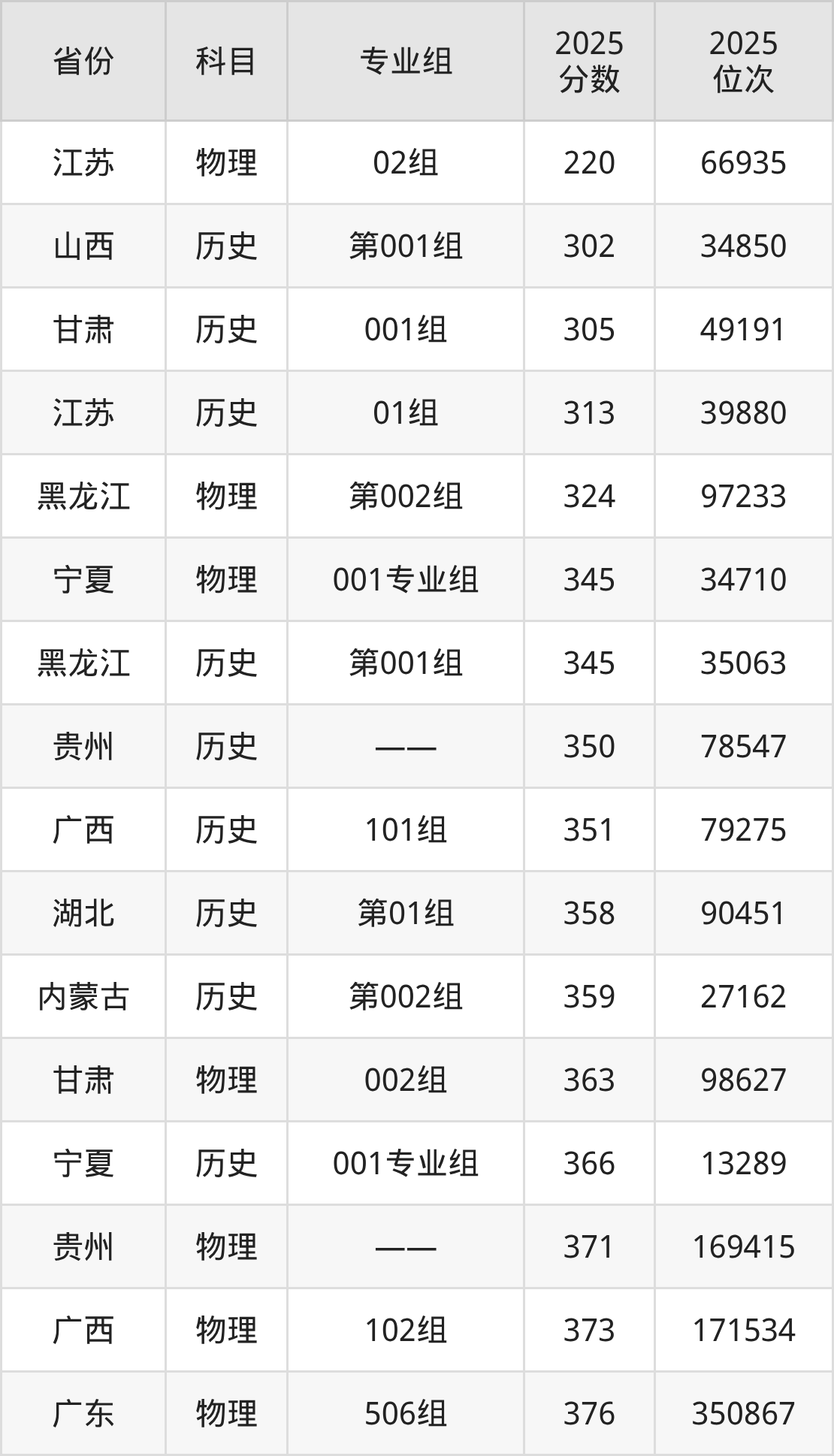 历史类:2025年湖南化工职业技术学院录取最低分是302分(山西),对应的位次排名是34850名。
