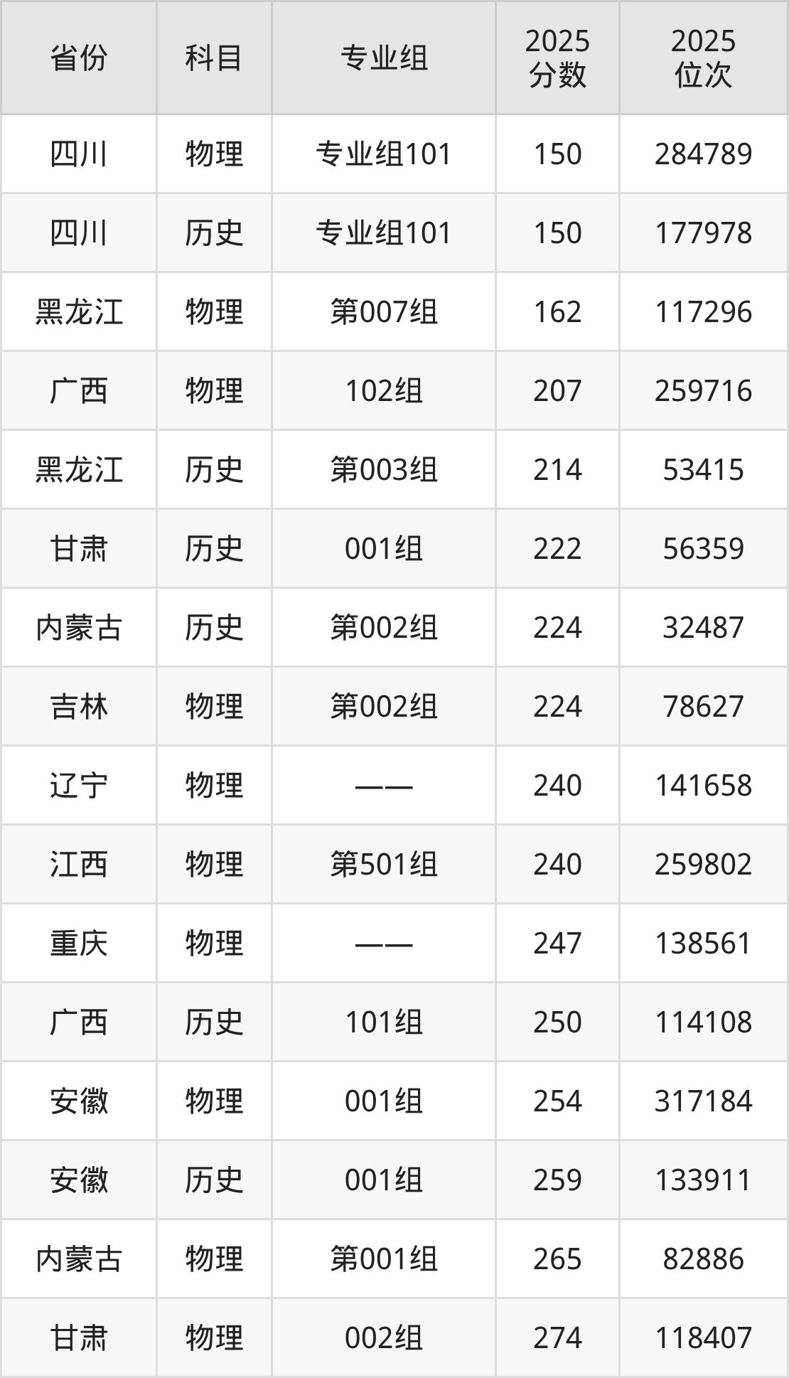 历史类:2025年黑龙江幼儿师范高等专科学校录取最低分是150分(四川),对应的位次排名是177978名。