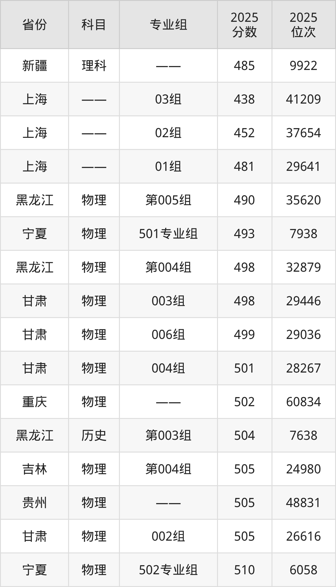 理科:2025年石家庄铁道大学录取最低分是485分(新疆),对应的位次排名是9922名。