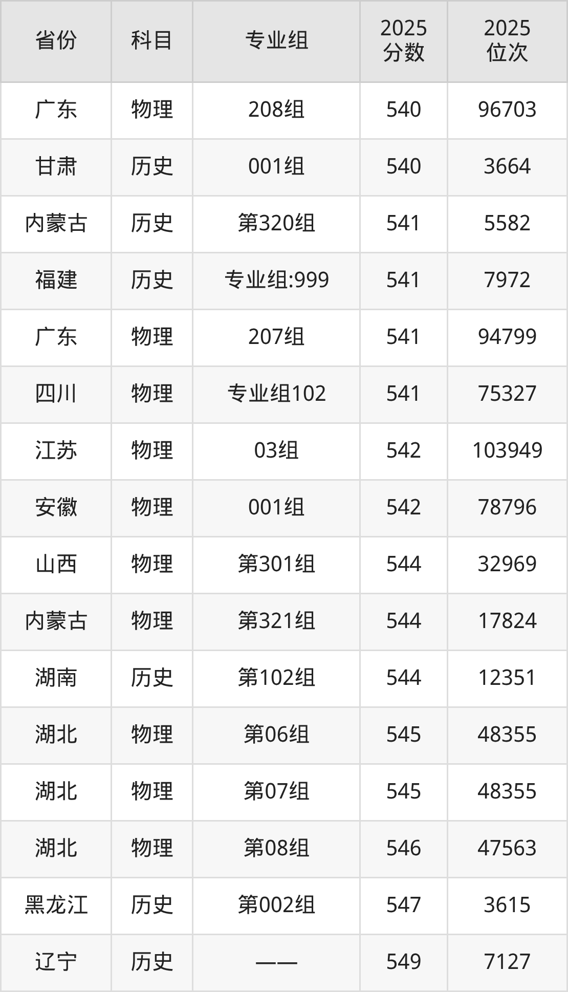 物理类:2025年石家庄铁道大学录取最低分是490分(黑龙江),对应的位次排名是35620名。