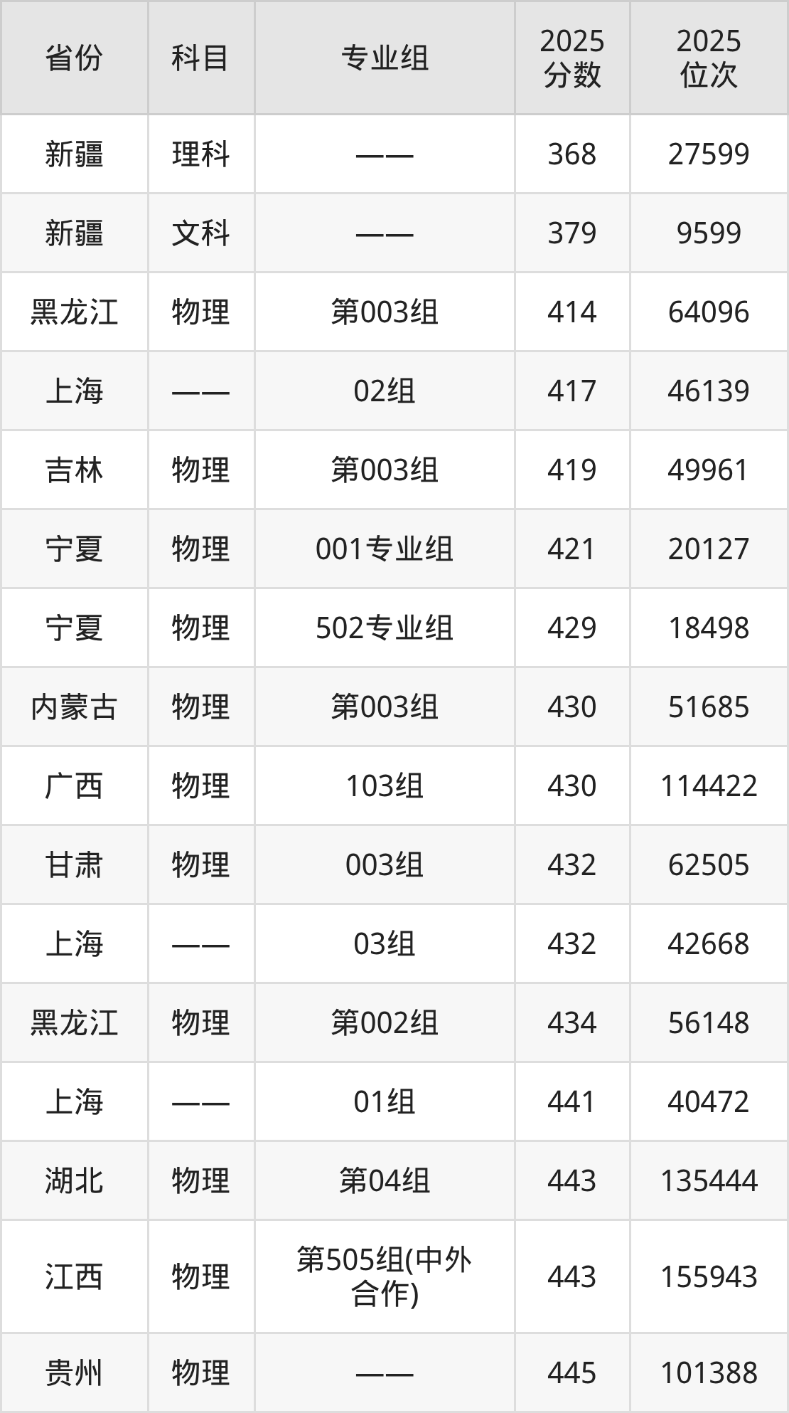 理科:2025年九江学院录取最低分是368分(新疆),对应的位次排名是27599名。