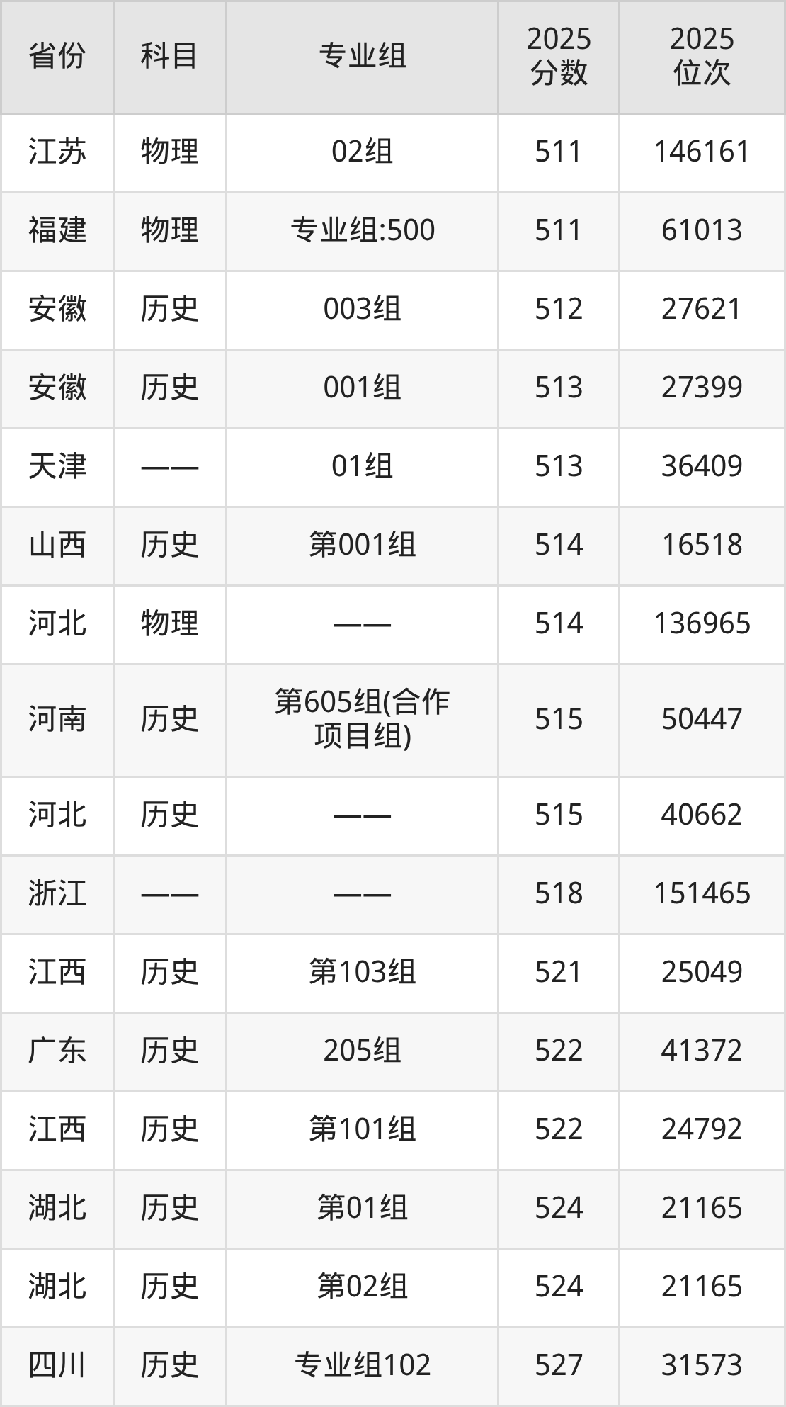 历史类:2025年九江学院省内录取最低分是511分,对应的位次排名是30822名。建议:如果2026年排名超过30822名,那么被该校录取的概率较大。