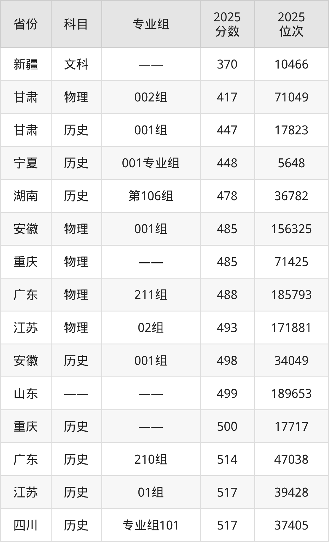 历史类:2025年新疆艺术学院录取最低分是447分(甘肃),对应的位次排名是17823名。