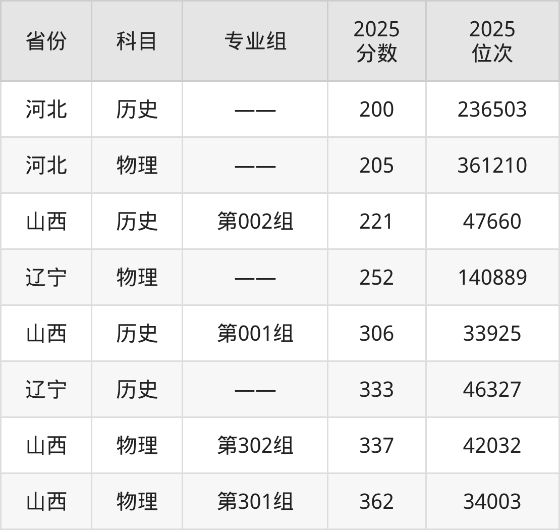 历史类:2025年石家庄经济职业学院省内录取最低分是200分,对应的位次排名是236503名。建议:如果2026年排名超过236503名,那么被该校录取的概率较大。