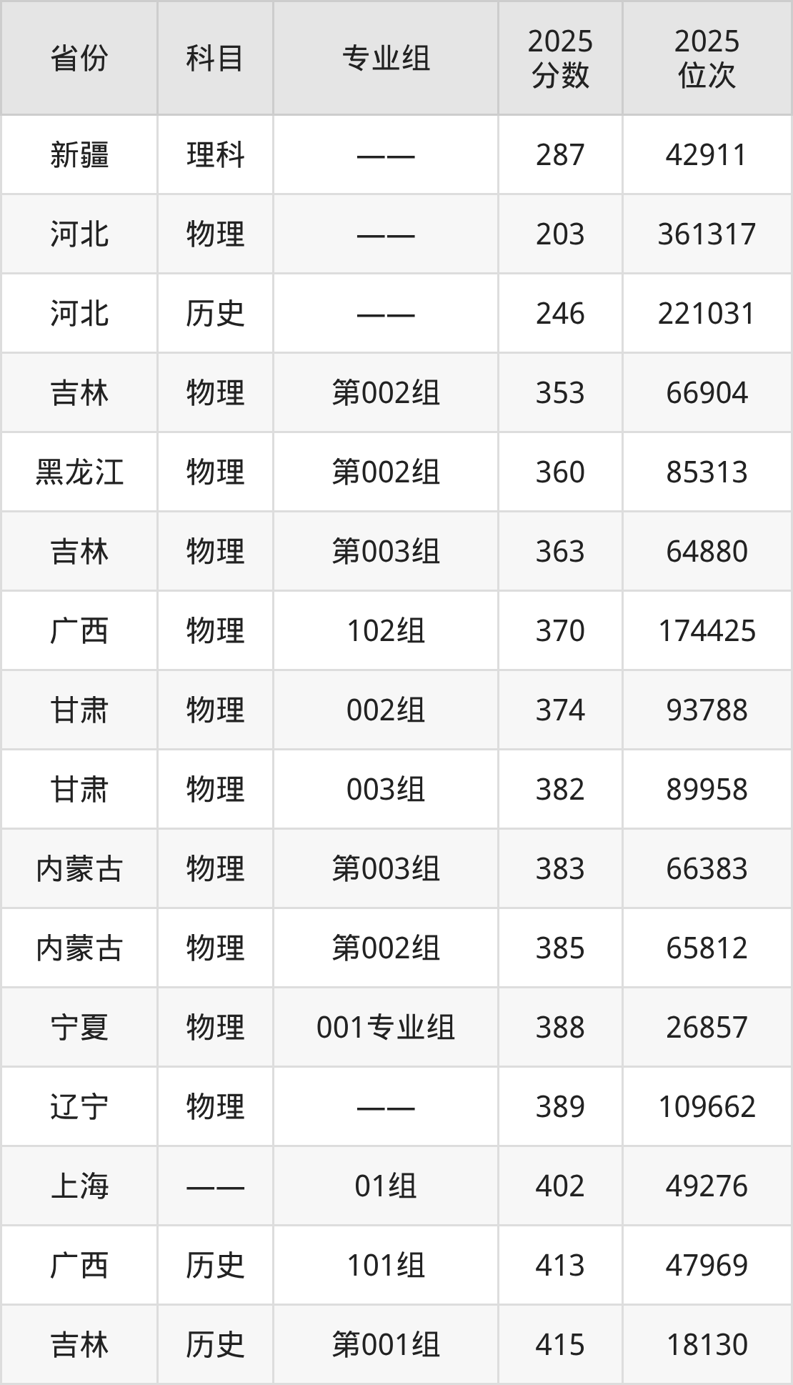 理科:2025年河北外国语学院录取最低分是287分(新疆),对应的位次排名是42911名。
