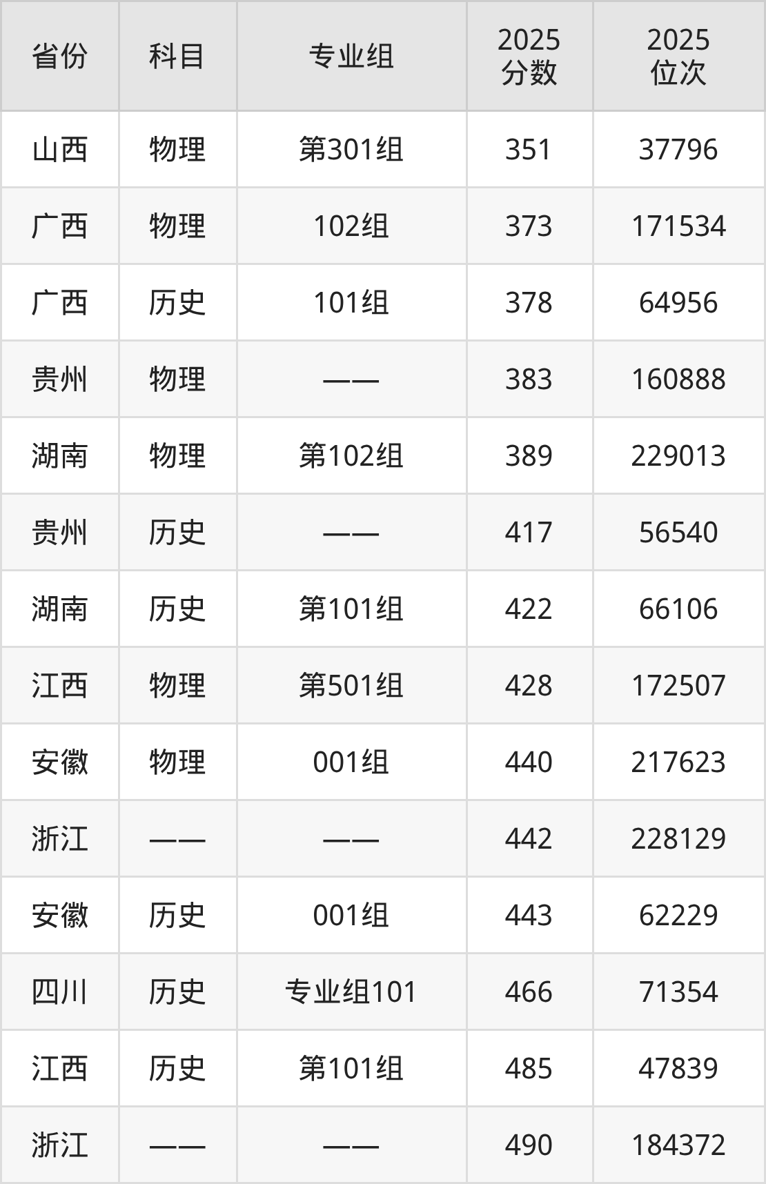 物理类:2025年温州科技职业学院录取最低分是351分(山西),对应的位次排名是37796名。
