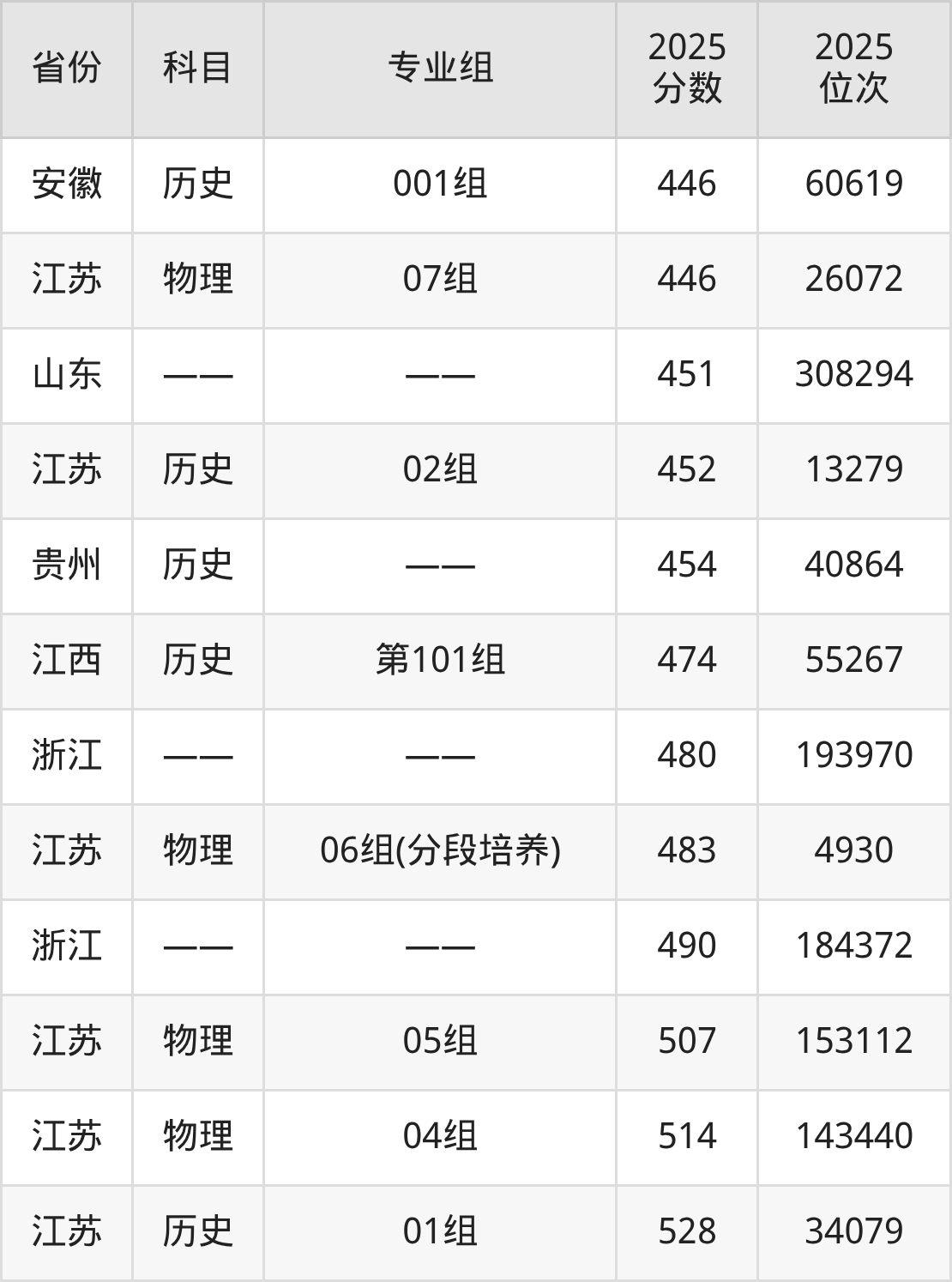 3+3地区:2025年扬州职业技术大学录取最低分是451分(山东),对应的位次排名是308294名。