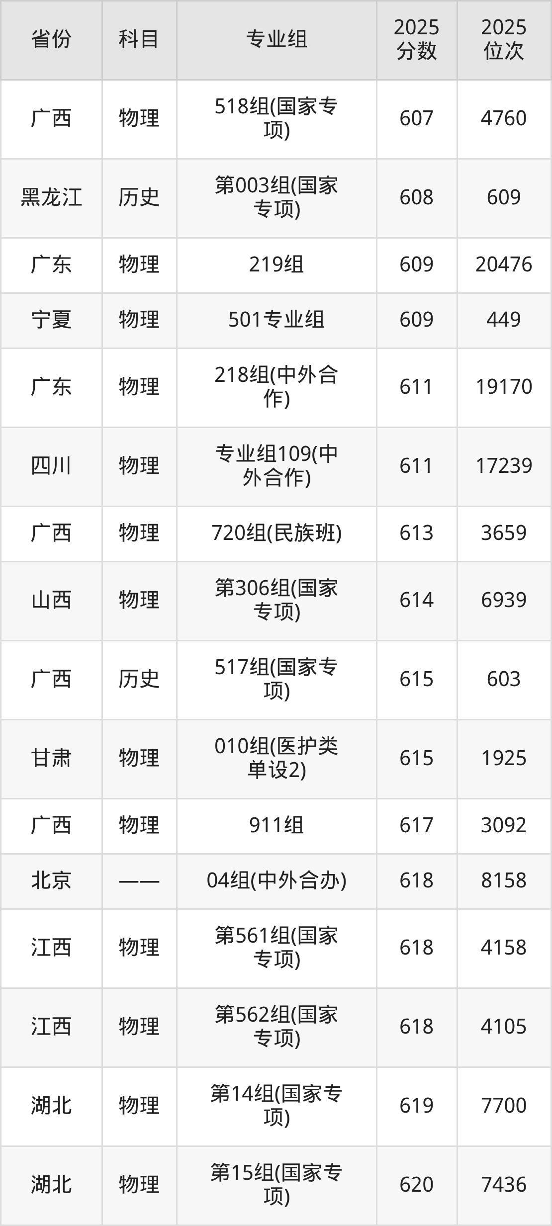 物理类:2025年武汉大学省内录取最低分是619分,对应的位次排名是7700名。建议:如果2026年排名超过7700名,那么被该校录取的概率较大。