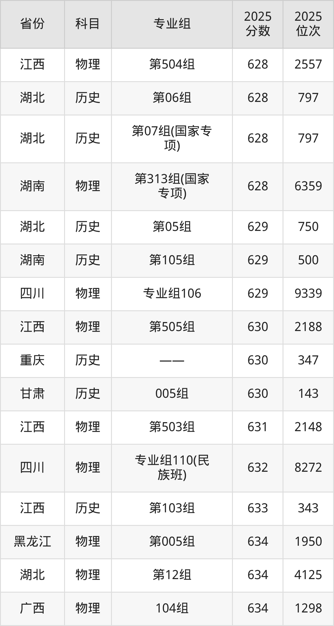 历史类:2025年武汉大学省内录取最低分是628分,对应的位次排名是797名。建议:如果2026年排名超过797名,那么被该校录取的概率较大。