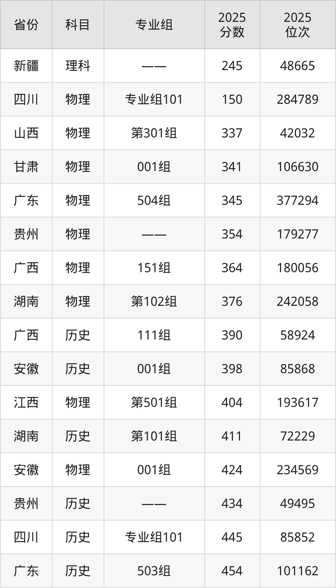 物理类:2025年漳州卫生职业学院录取最低分是150分(四川),对应的位次排名是284789名。