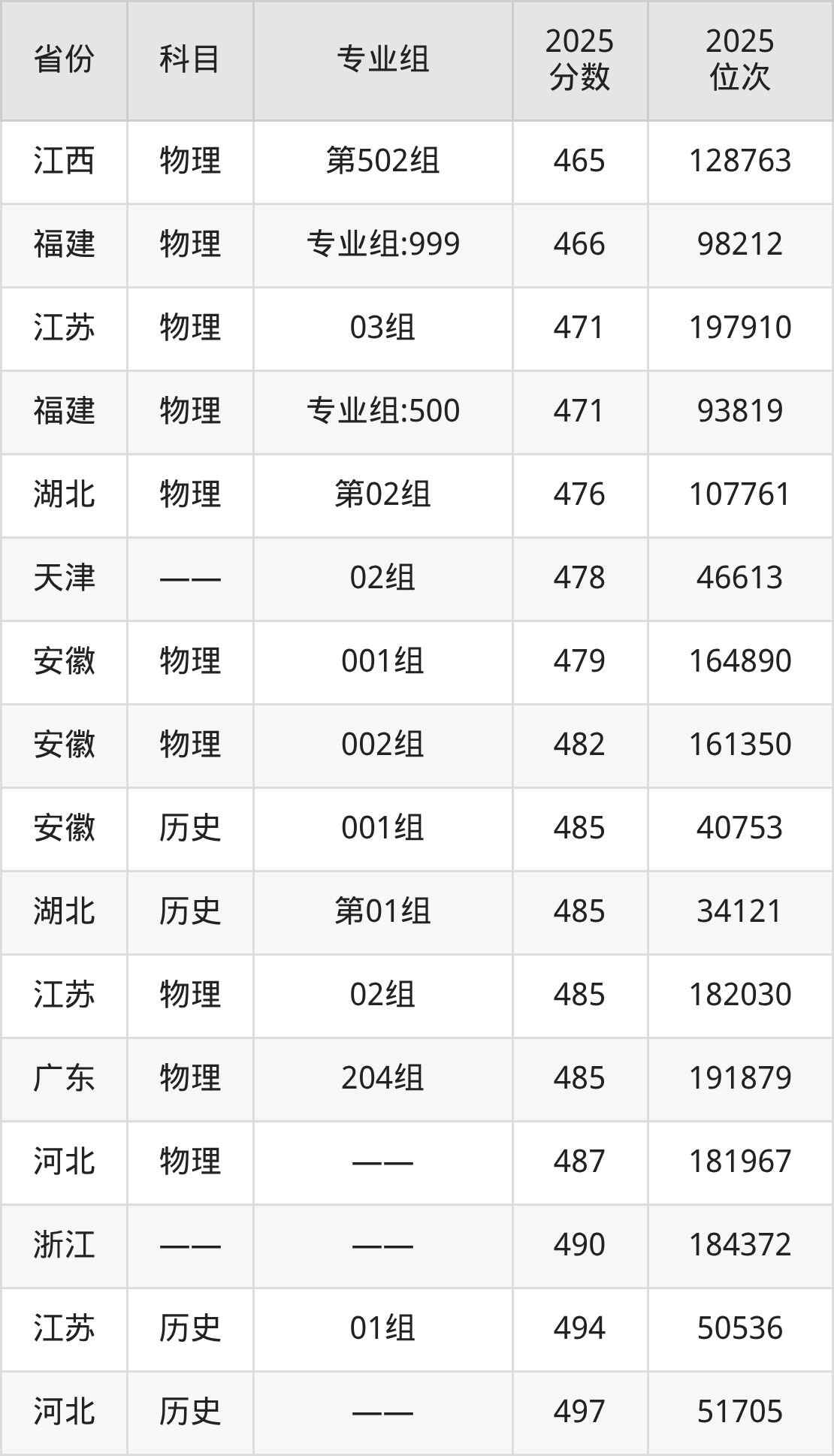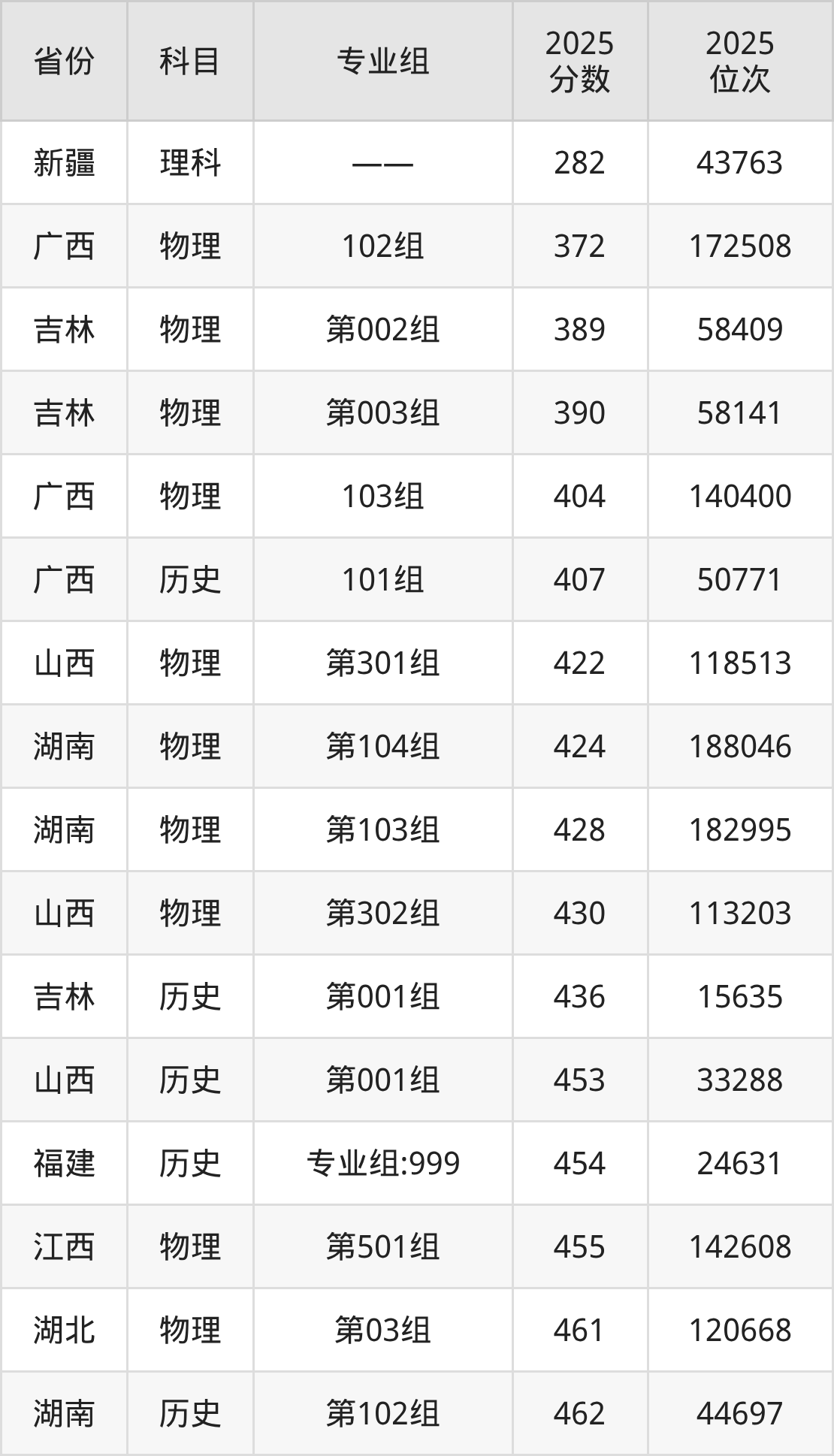 物理类:2025年湘潭理工学院录取最低分是372分(广西),对应的位次排名是172508名。
