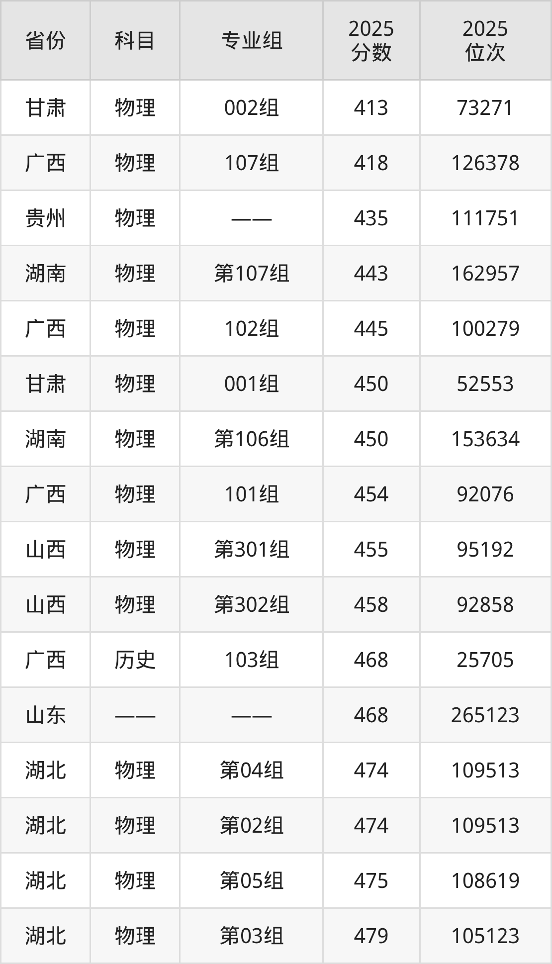 历史类:2025年六盘水师范学院录取最低分是468分(广西),对应的位次排名是25705名。