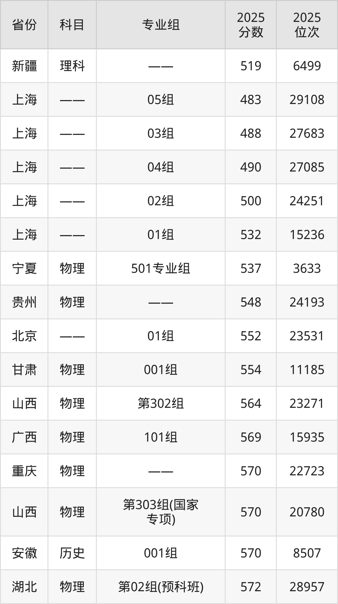 物理类:2025年上海电力大学录取最低分是537分(宁夏),对应的位次排名是3633名。