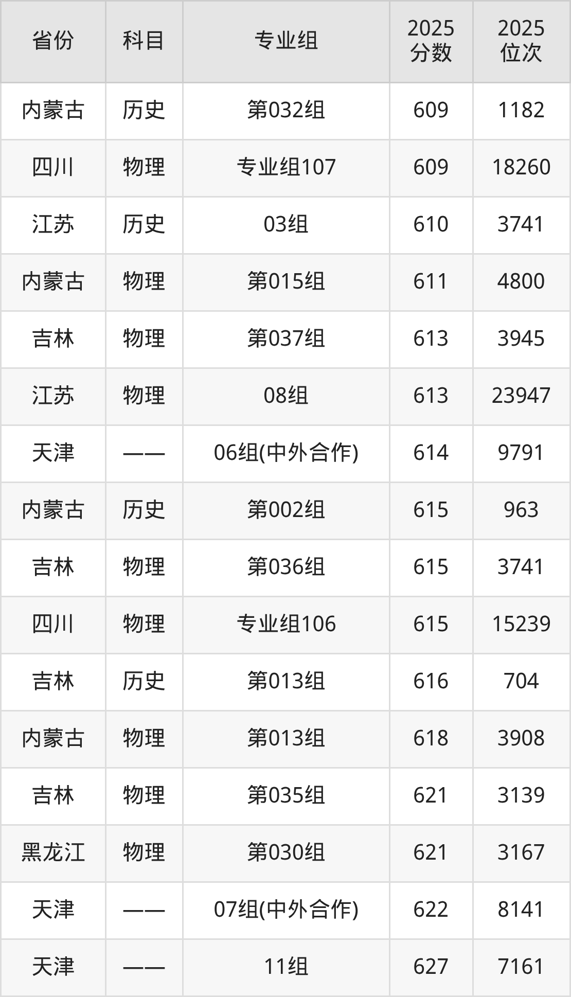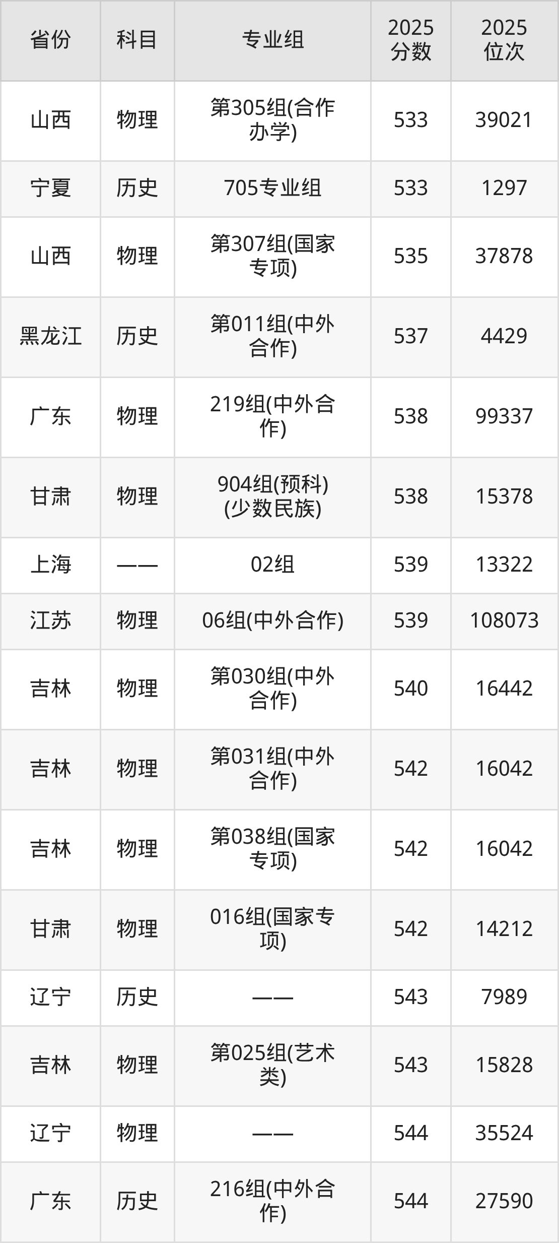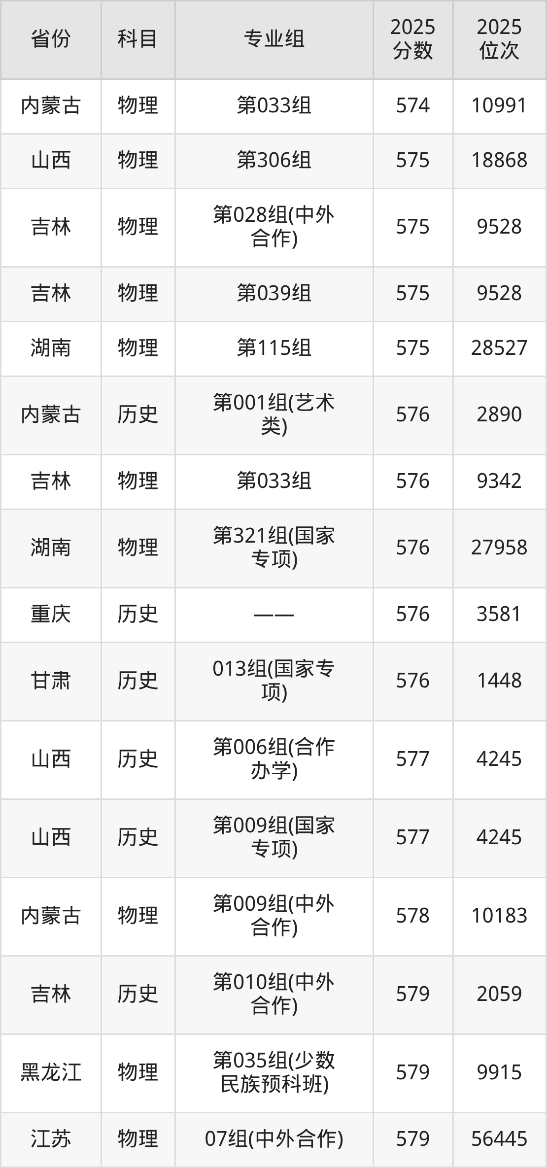 2025年东北师范大学全国录取分数线一览表: