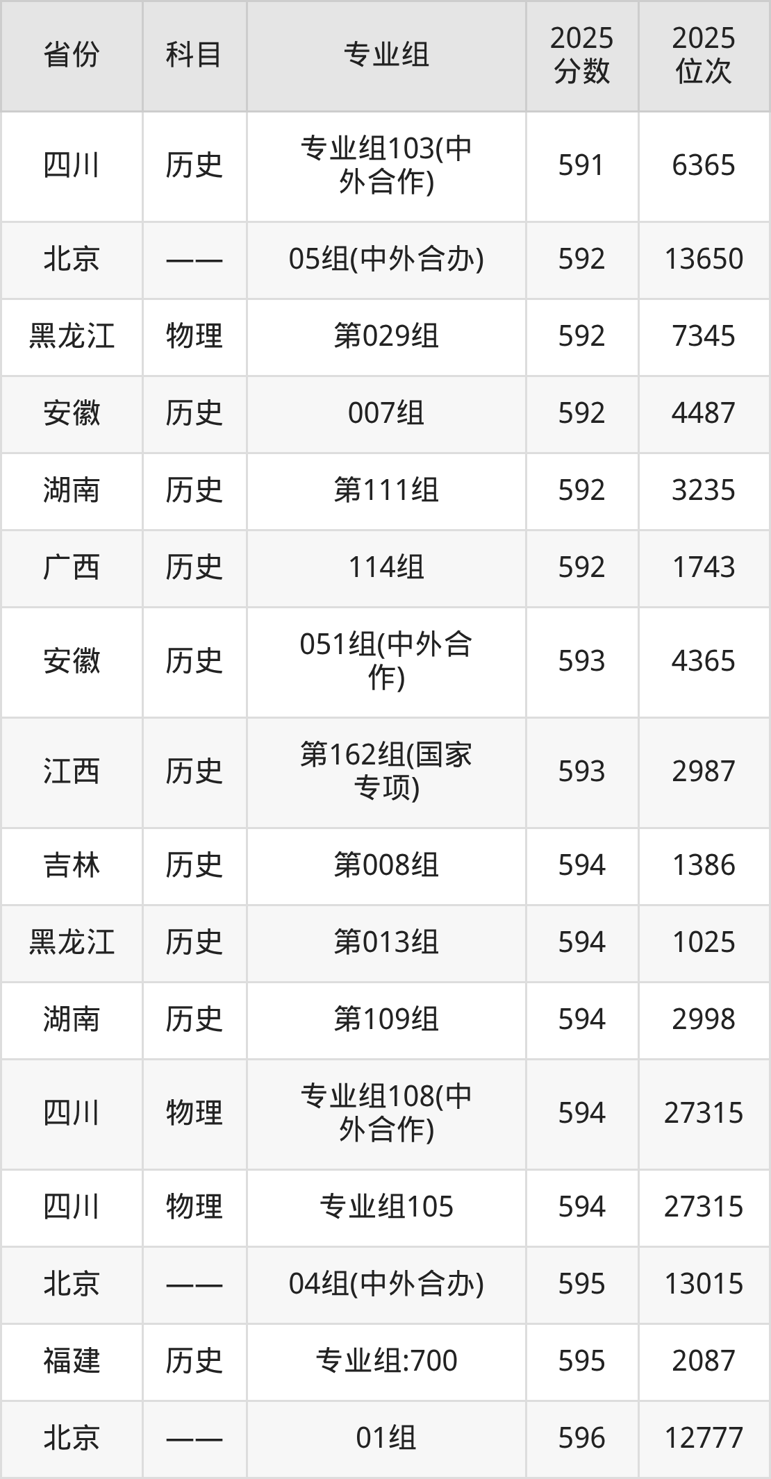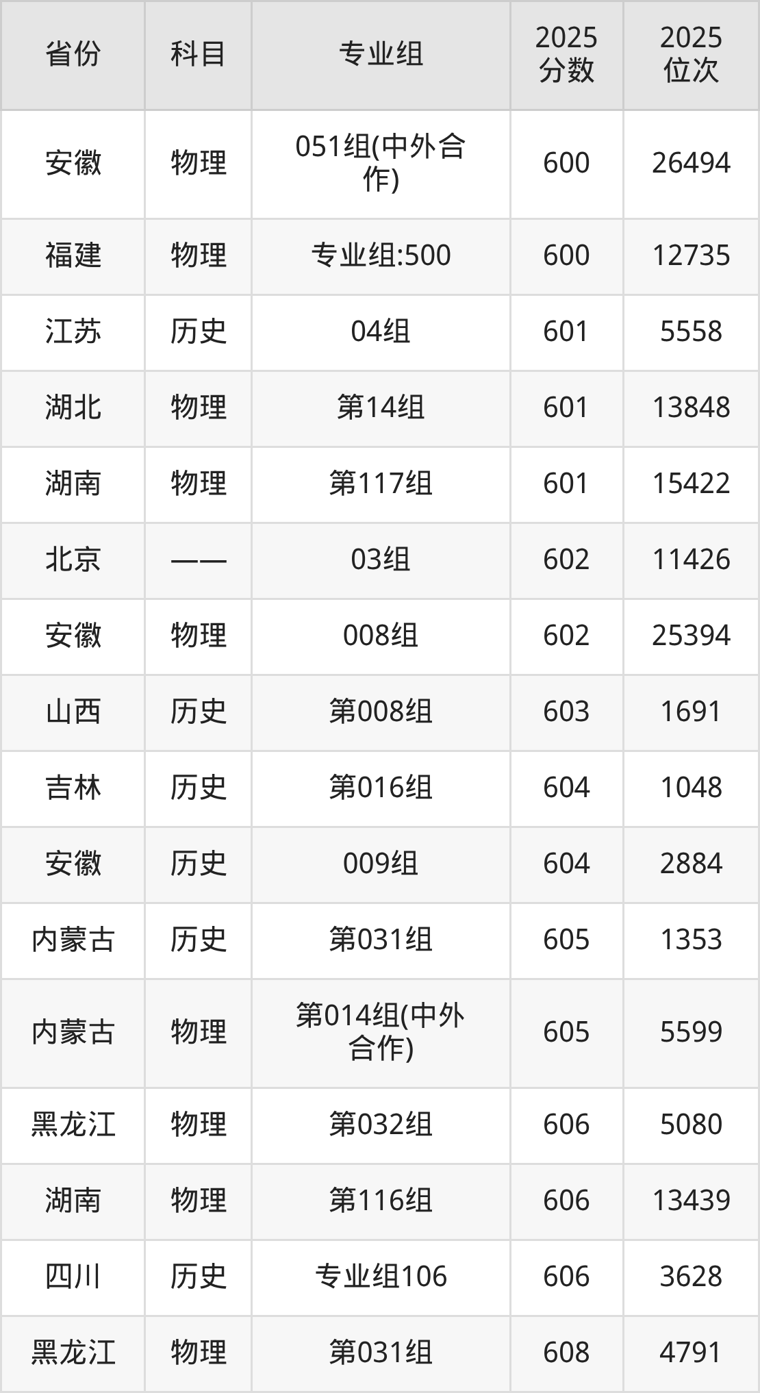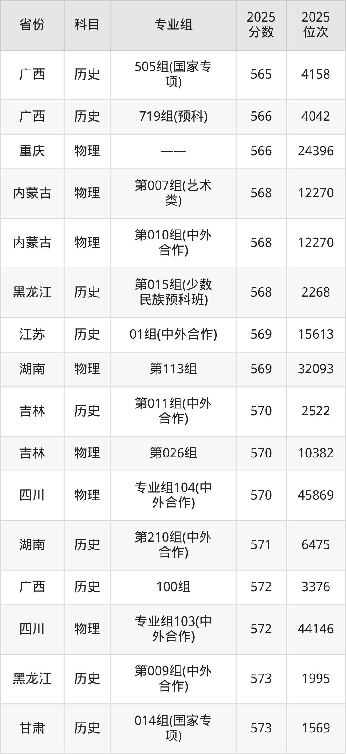 2025年东北师范大学全国录取分数线一览表: